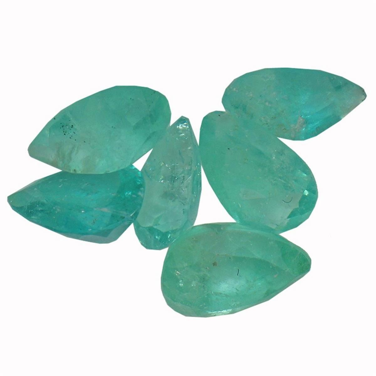 Five pear mixed cut natural emeralds, measuring 6.25 x 4.00 x 2.90mm, approximate total weight of 3.61ct., clarity is heavily included, type III, medium dark, very slightly grayish, bluish green color, (GIA bG 6/3), cut is good. Indications of multiple laboratory enhancements, including high temperature heat treatment._x000D_ Westfield Appraised.