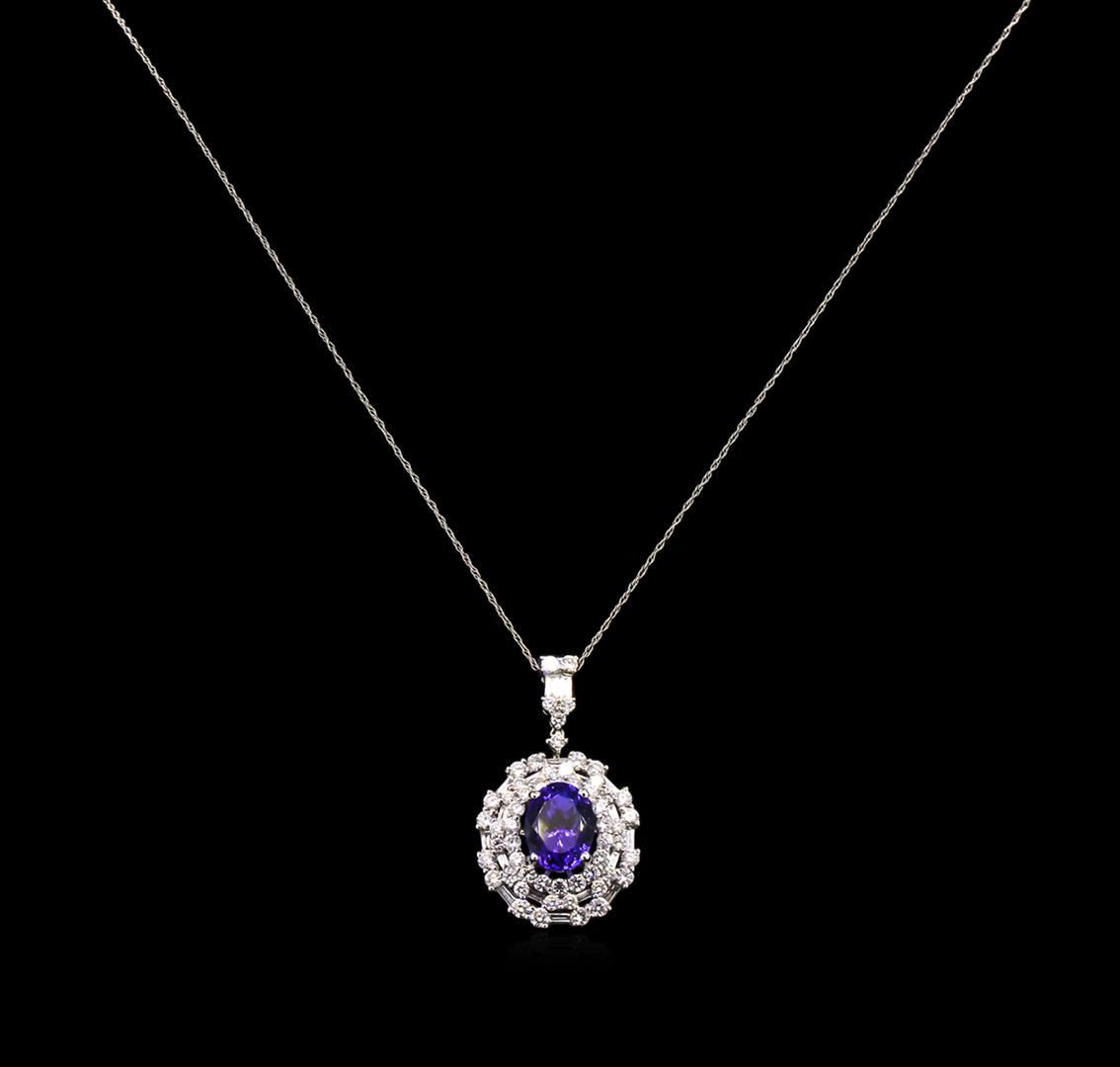 One pendant with chain featuring: 18KT white gold weighing 5.10 grams containing one tanzanite with a total weight of 3.61ct and diamonds with a total weight of 2.28ct.