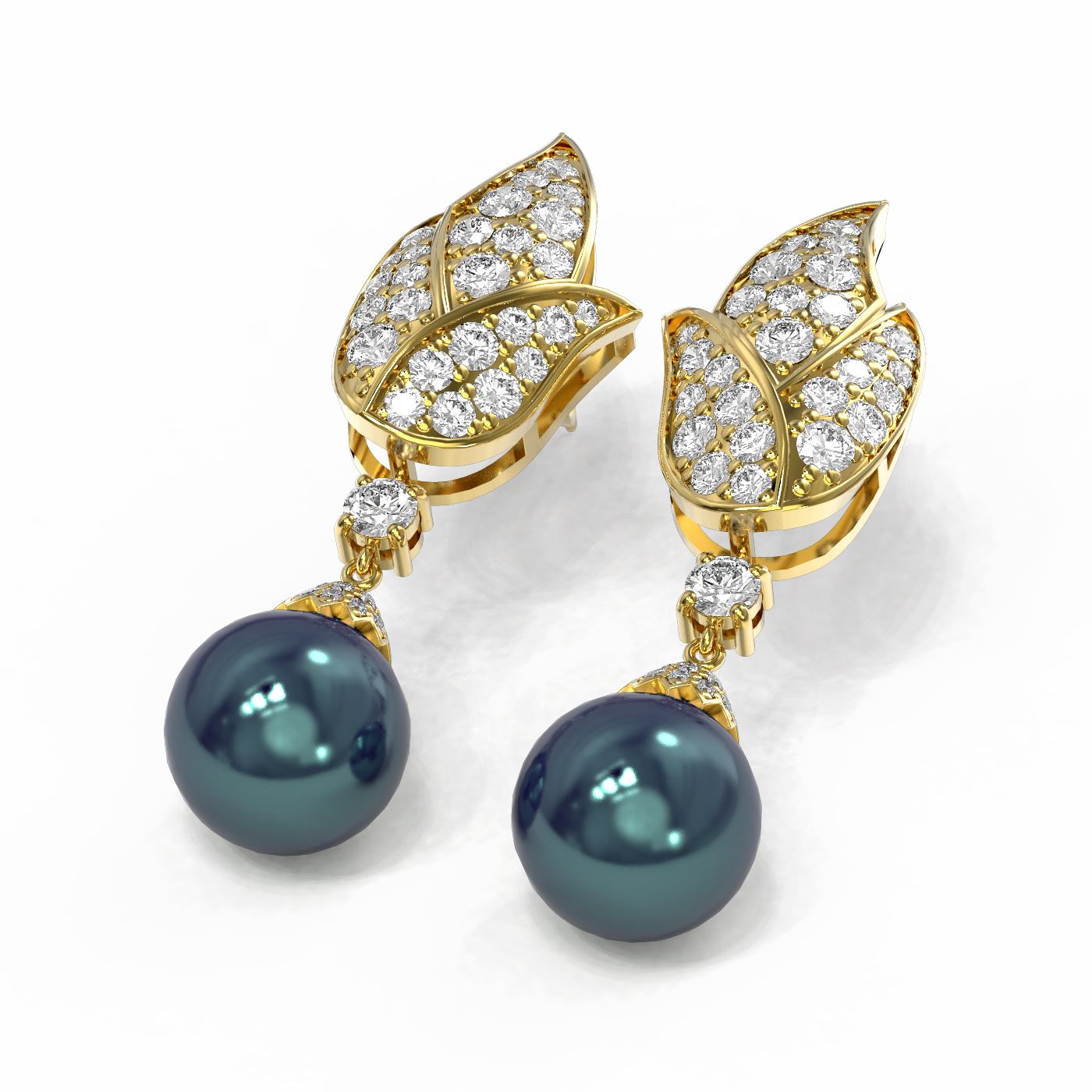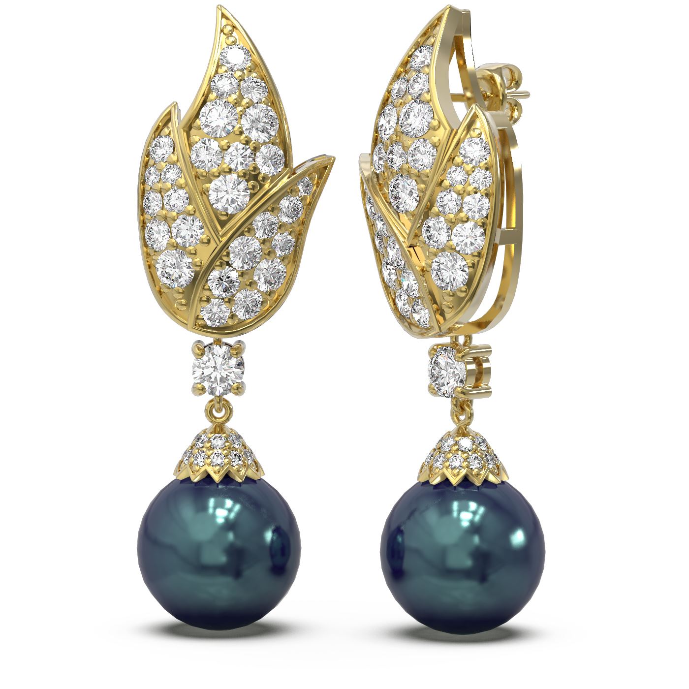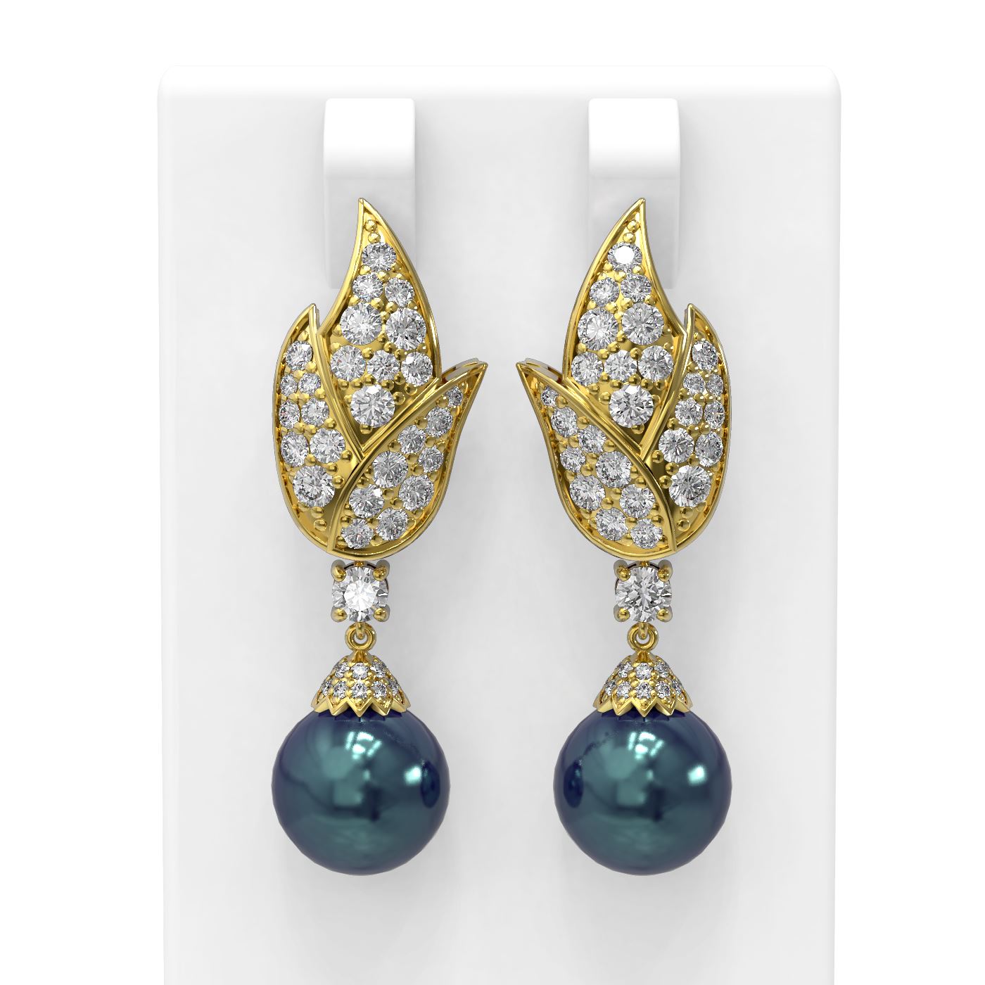 SKU: 55036 ---- 3.62 ctw Diamond & Pearl Earrings 18K Yellow Gold
