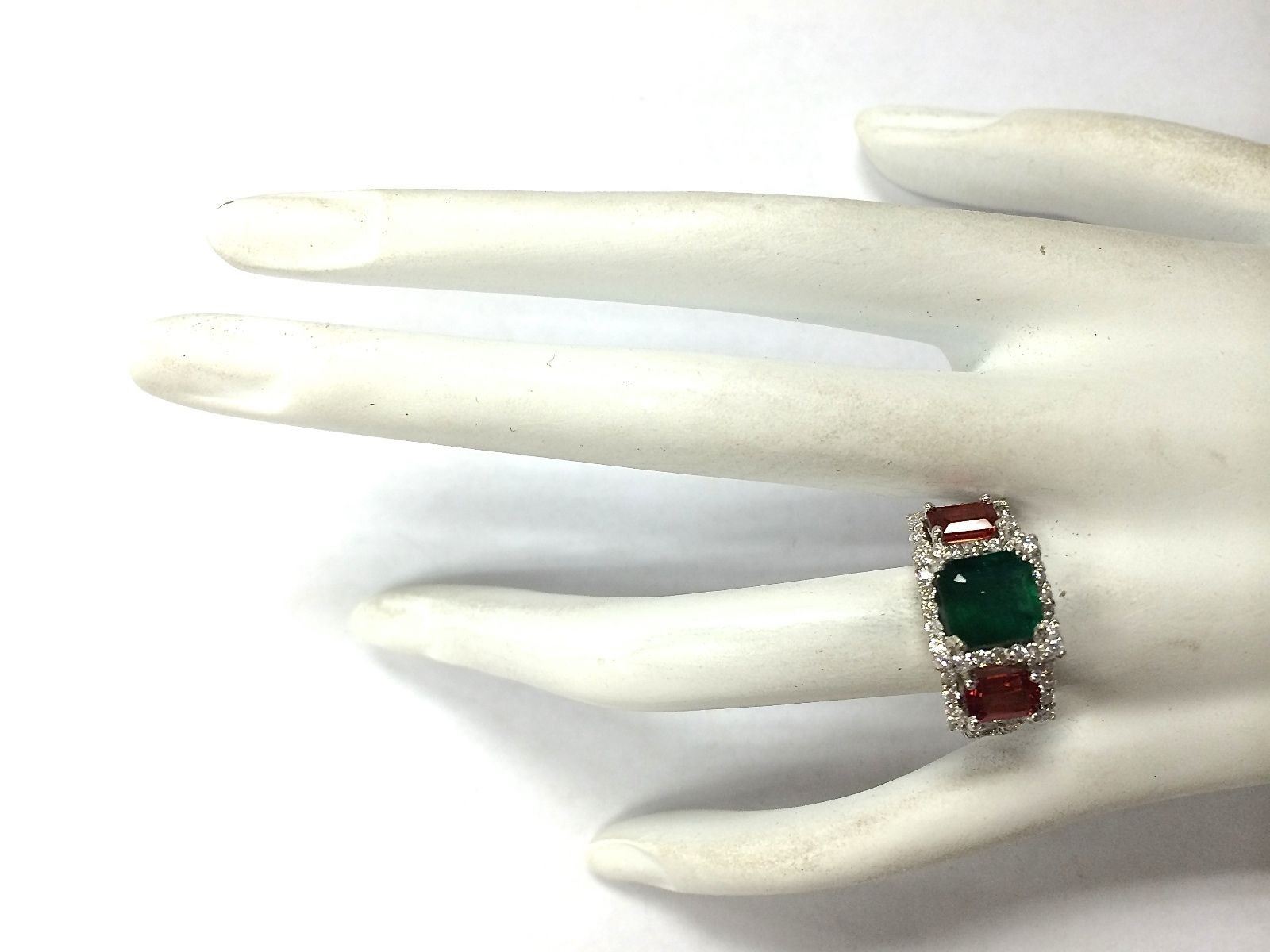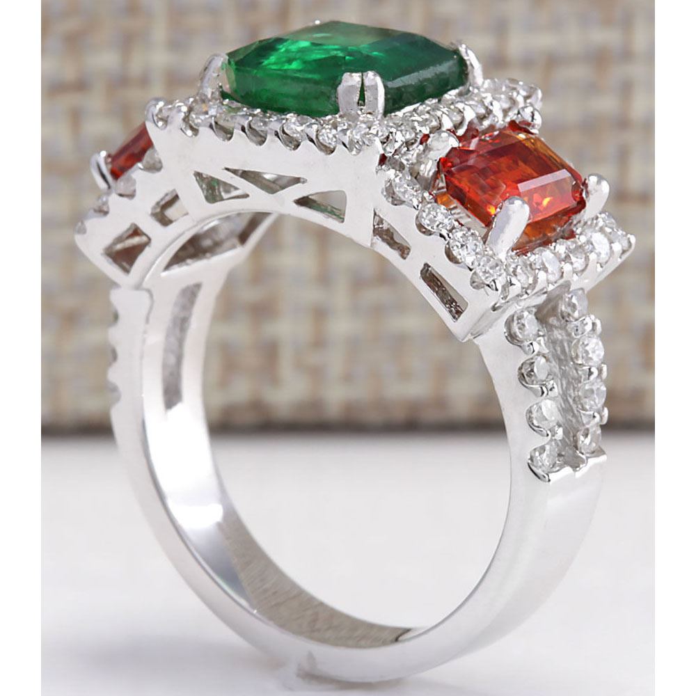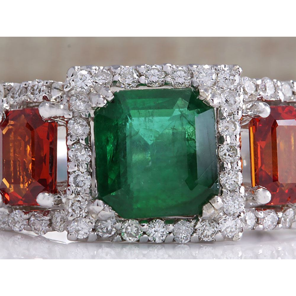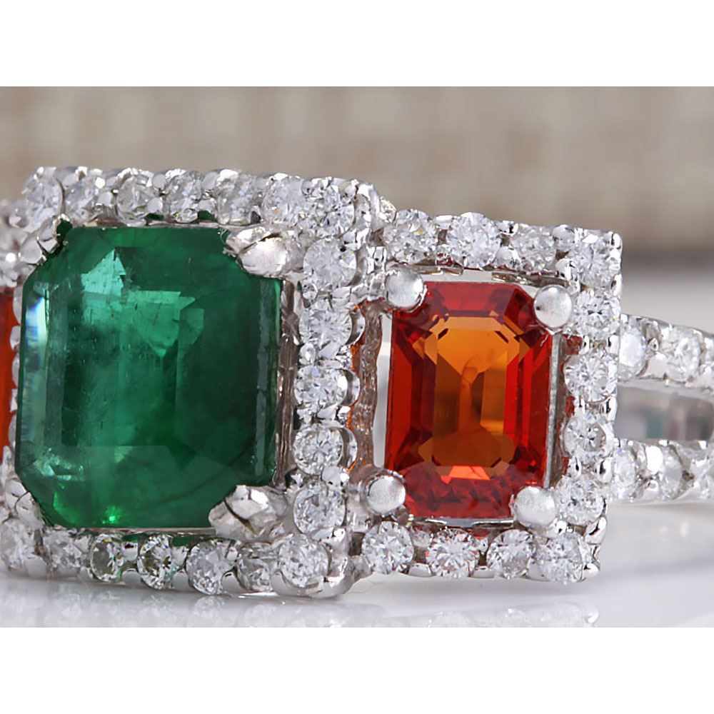 3.63 CTW Natural Emerald Ad Sapphire Diamond Ring 18K Solid White Gold
