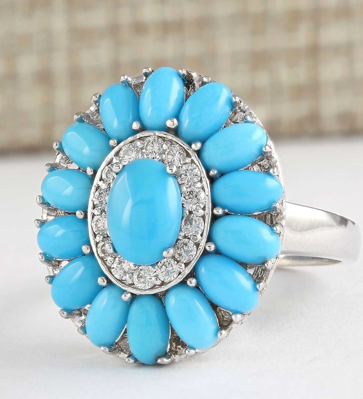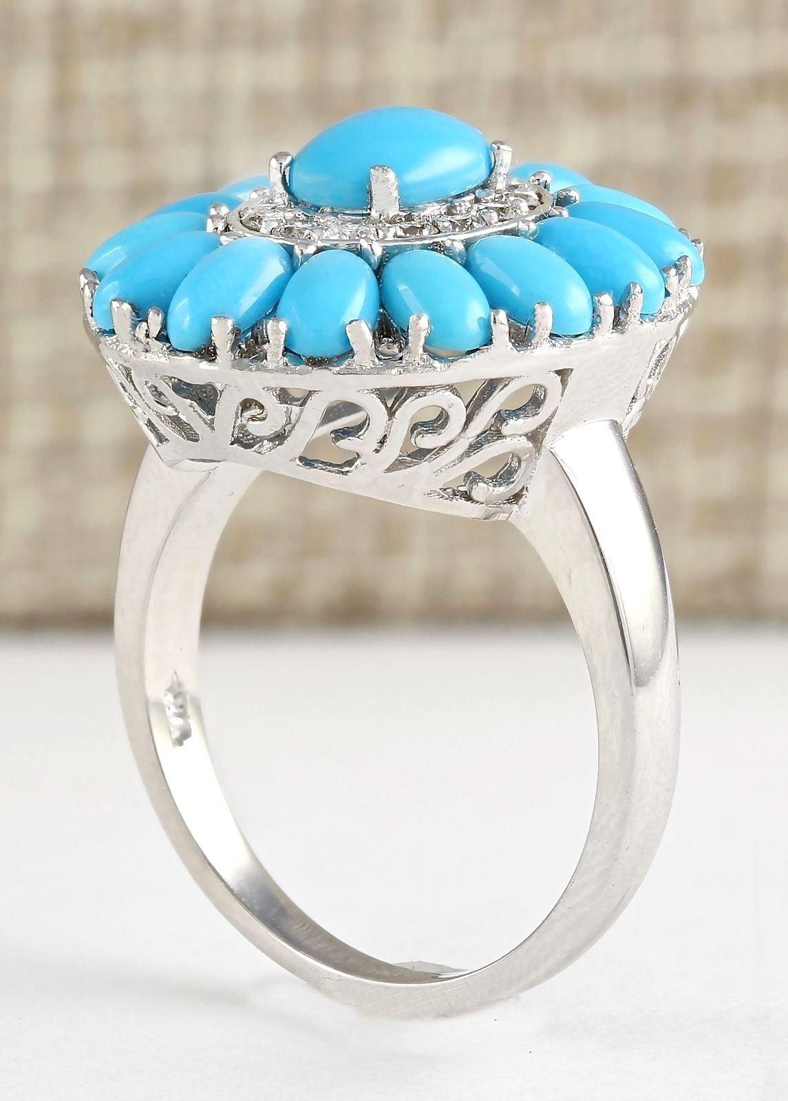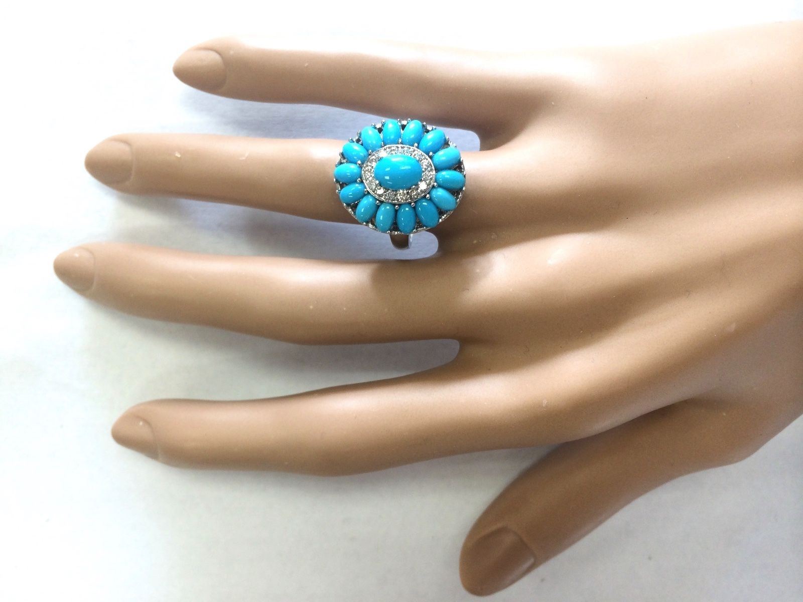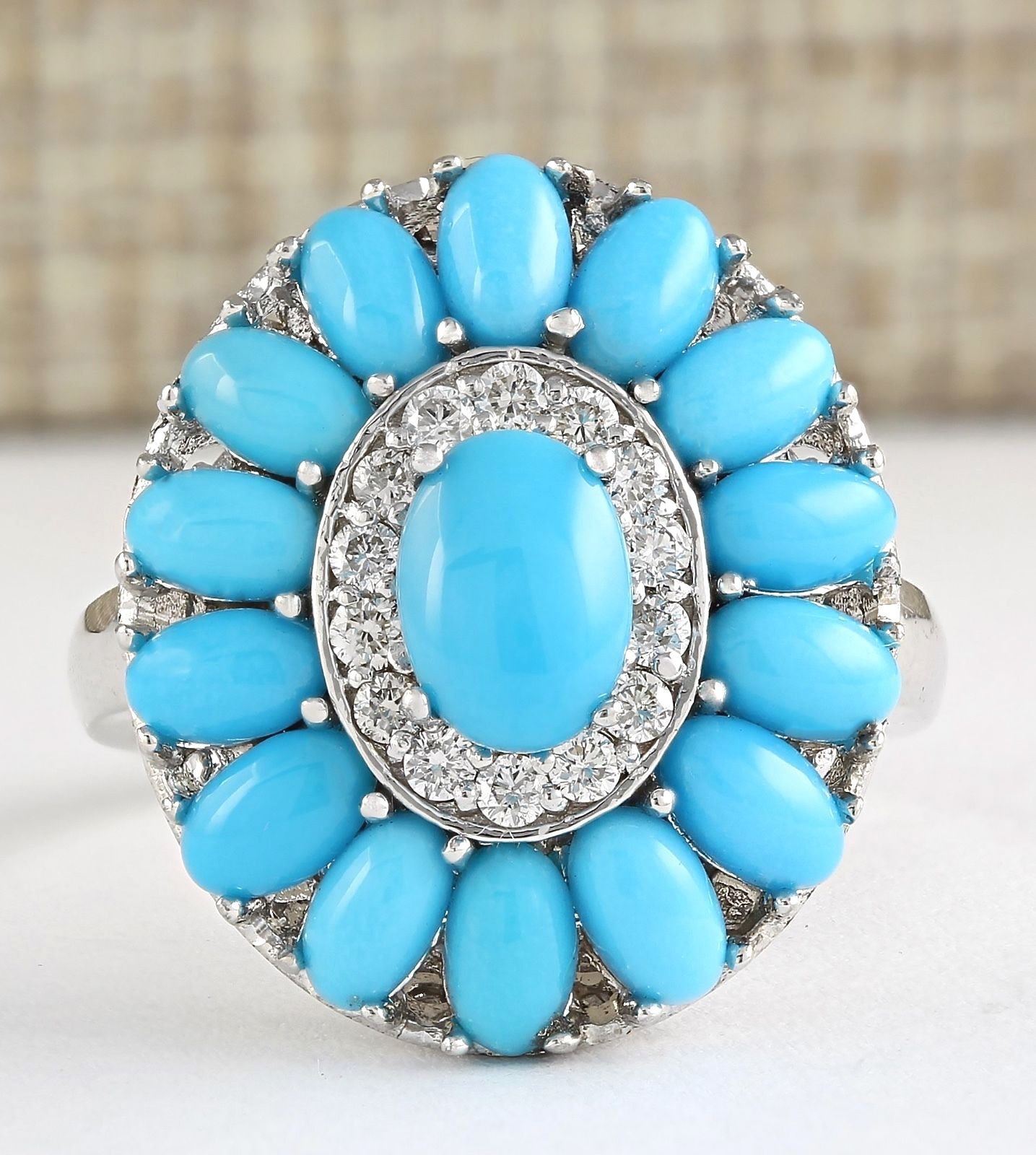 3.63 CTW Natural Turquoise And Diamond Ring In 18K White Gold