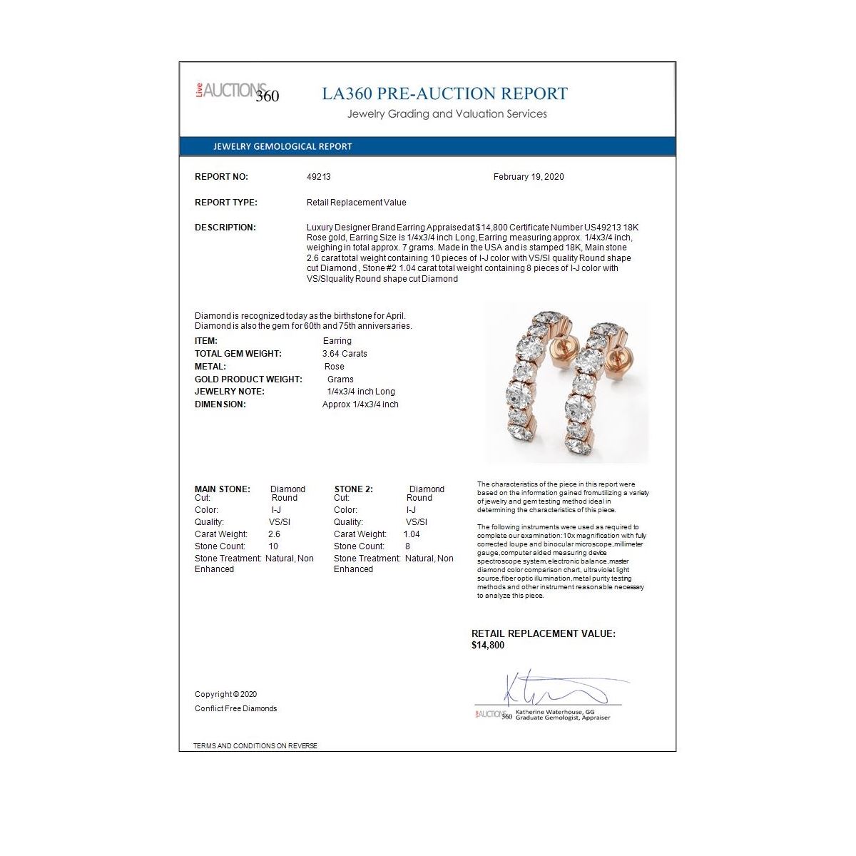 All sales are final, placing a bid is a legally binding obligation. All lots are sold as is, where is, with all the faults, imperfections, omissions and errors in the written description, estimates, appraisals, graphics and photography. USJL is not responsible for any errors or omissions in the description, graphics or photography provided or in the bidding software. Due diligence to verify the condition and description of a lot is the sole responsibility of the Bidder prior to placing any bid. Returns may only be made with the advance written authorization of USJL and are in USJL's sole discretion to approve. To request a return you must provide a written request fully explaining the basis for the return no later than 4 days after your receipt of the lot. Under no circumstances will any amounts other than the winning bid amount be refunded. A restocking charge of 19% of the full invoice amount may apply in USJL 's sole discretion. Any allowed returns must be received in exactly the same condition as when originally shipped to Buyer, or they will be returned to buyer at Buyer's cost. Any unauthorized returns will be refused. DELIVERY REFUSAL OF ITEMS SHIPPED BY US JEWELRY LIQUIDATION TO THE BIDDER CONSTITUTES AN UNAUTHORIZED RETURN IN DIRECT VIOLATION OF THESE GENERAL TERMS AND CONDITIONS.