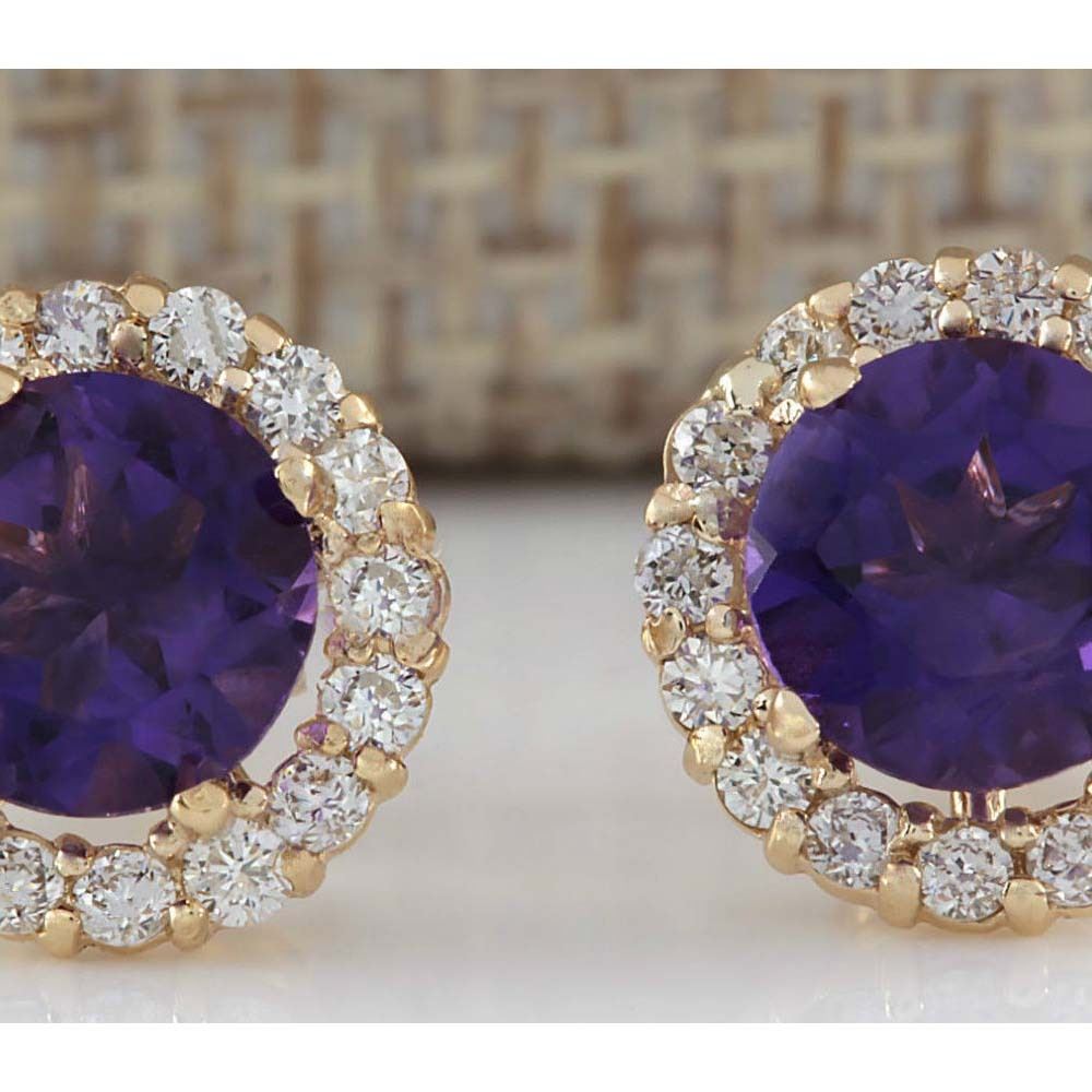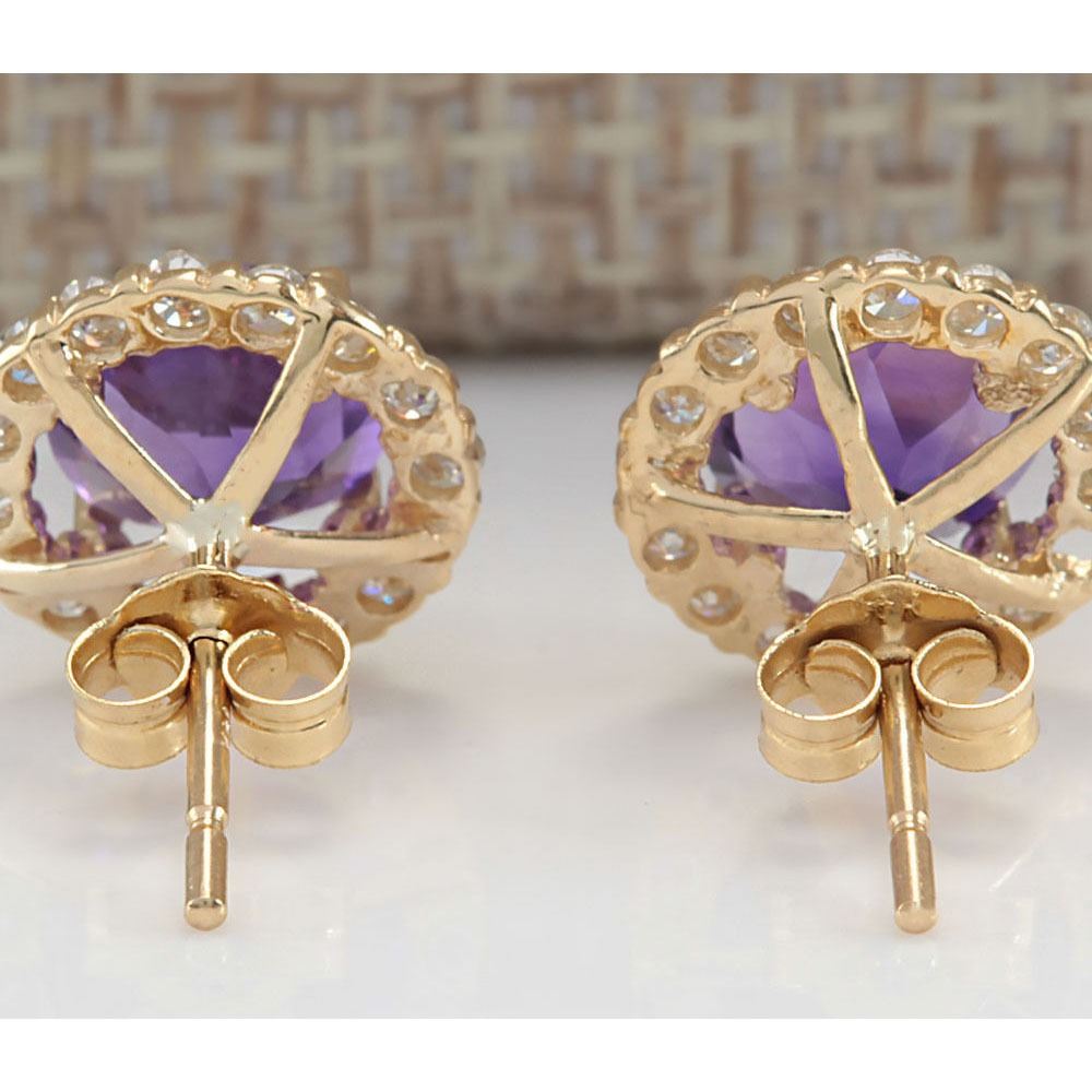 3.65 CTW Natural Amethyst And Diamond Earrings 18K Solid Yellow Gold