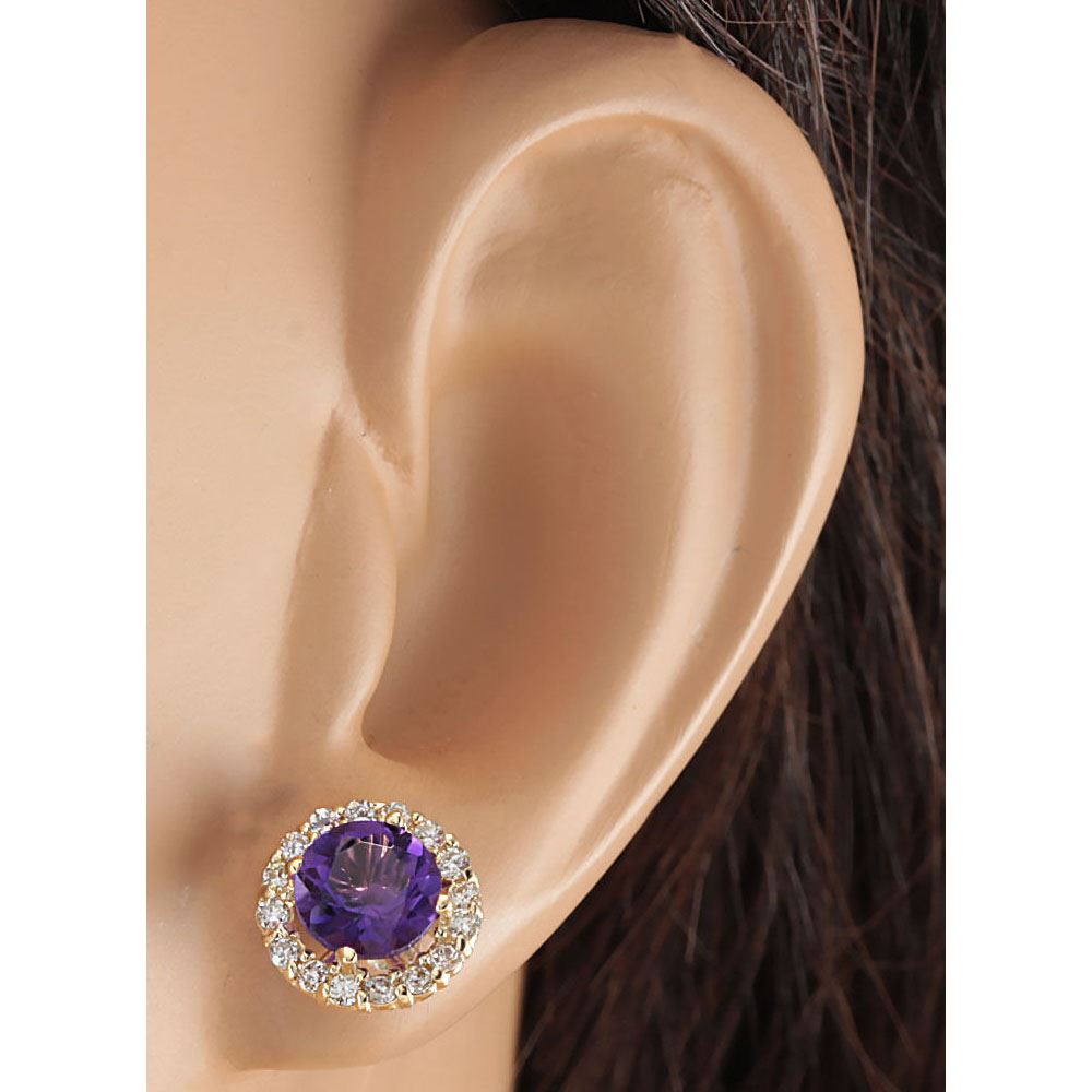 3.65 CTW Natural Amethyst And Diamond Earrings 18K Solid Yellow Gold