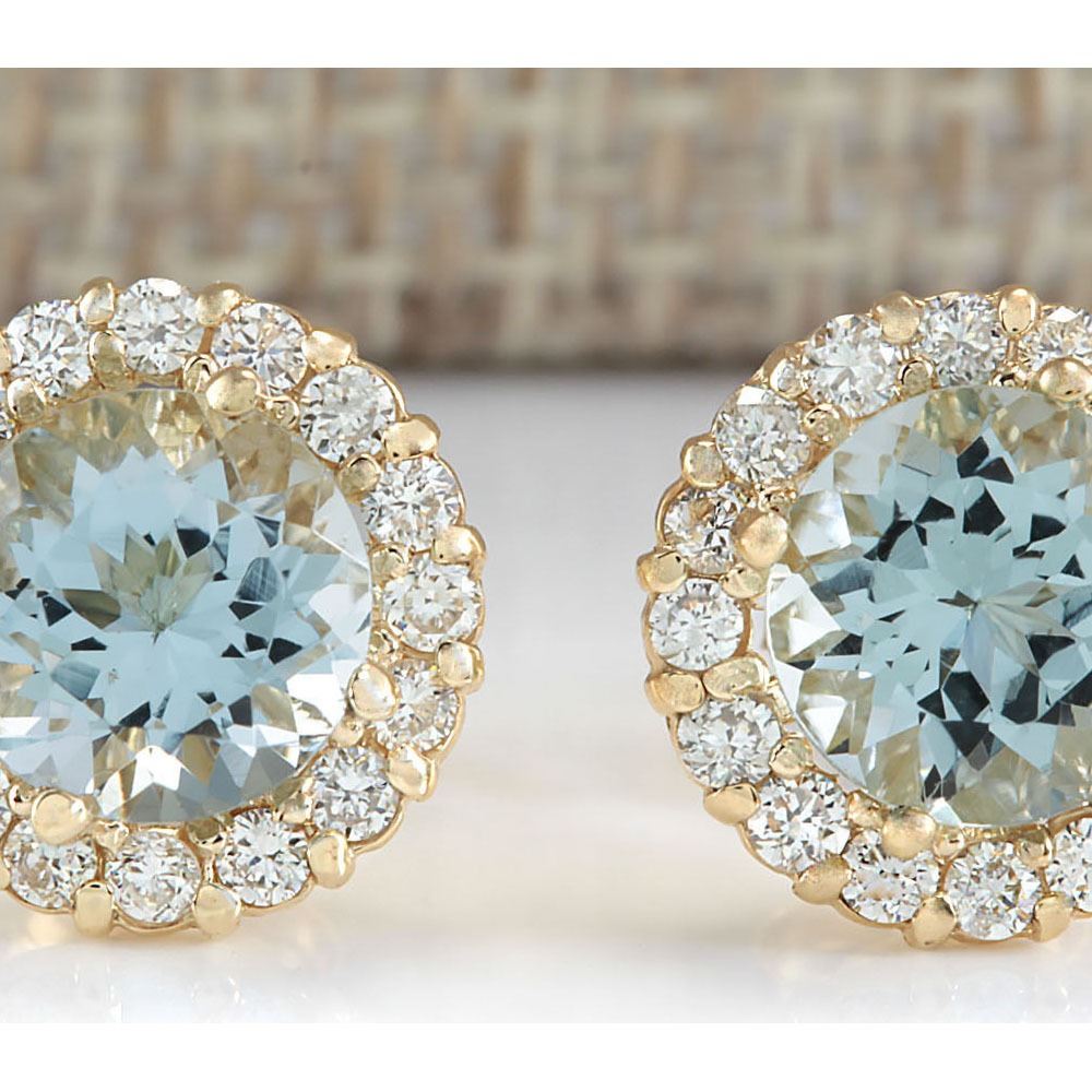 3.65 CTW Natural Aquamarine And Diamond Earrings 18K Solid Yellow Gold