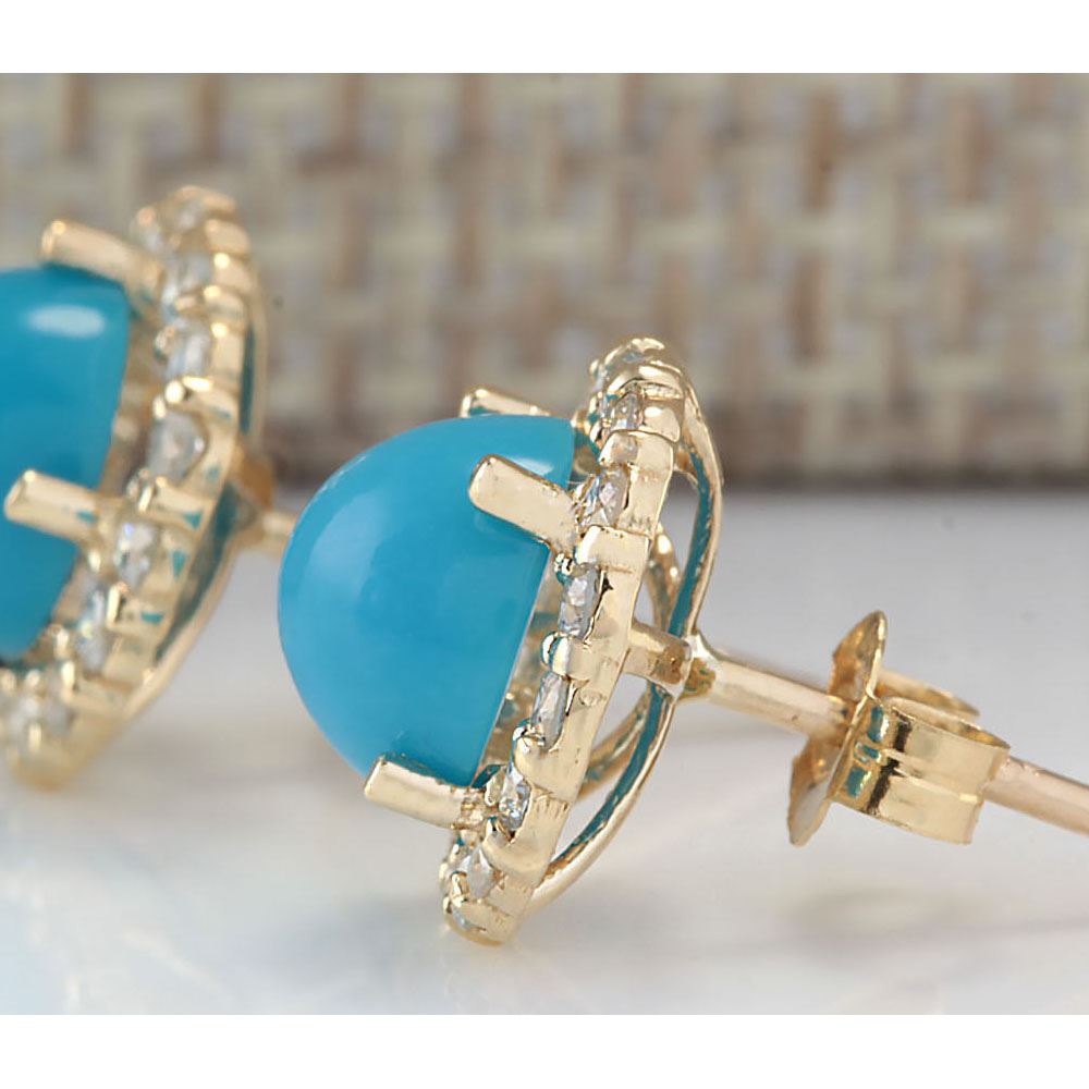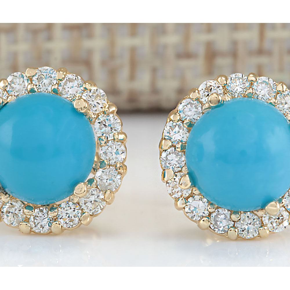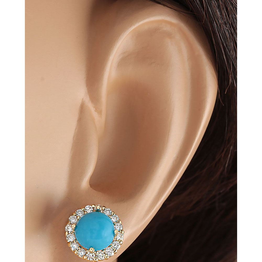 3.65 CTW Natural Blue Turquoise And Diamond Earrings 18K Solid Yellow Gold