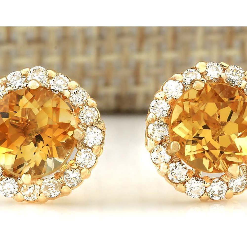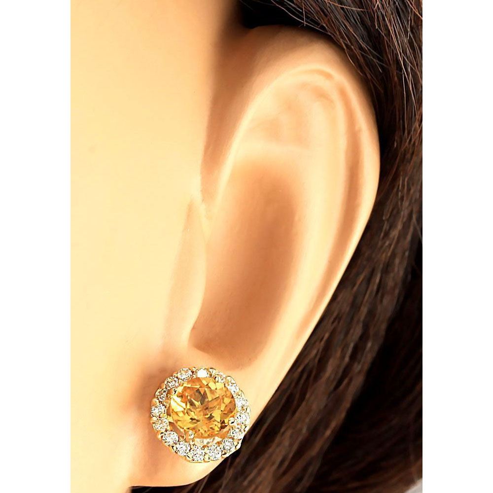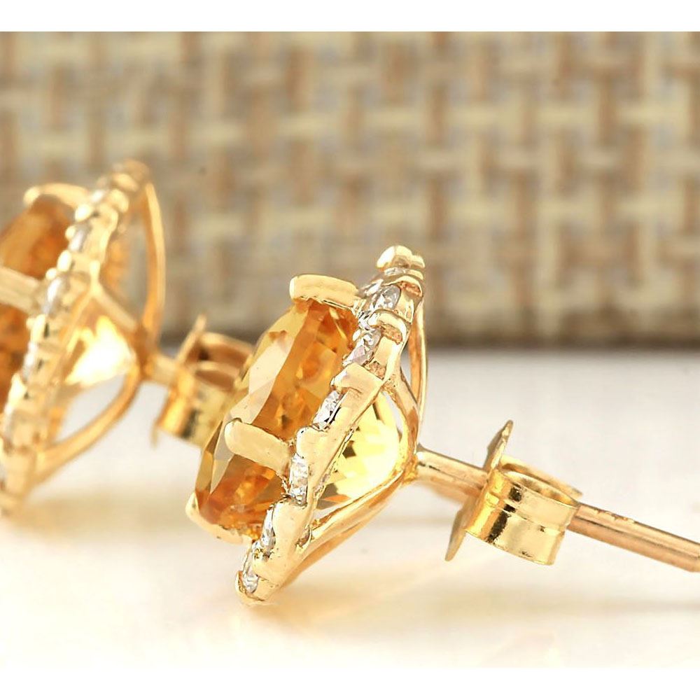 3.65 CTW Natural Citrine And Diamond Earrings 18K Solid Yellow Gold