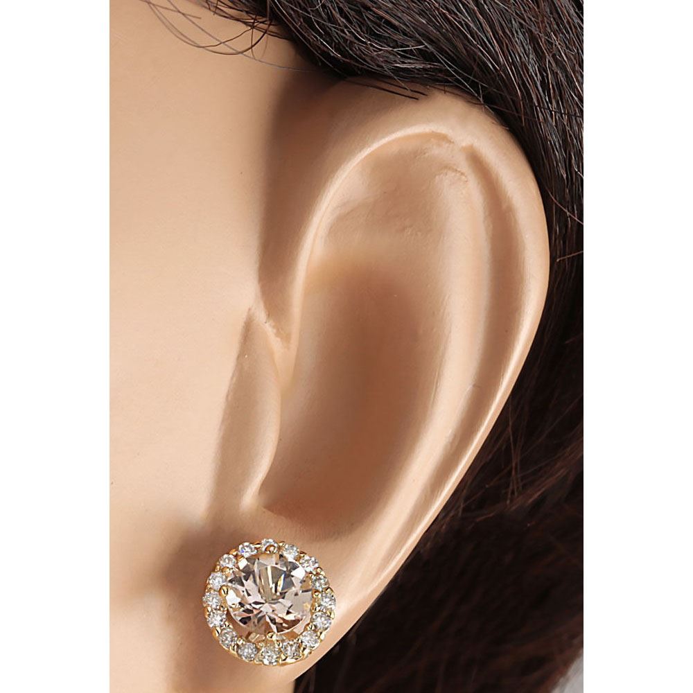 3.65 CTW Natural Morganite And Diamond Earrings 14k Solid Yellow Gold