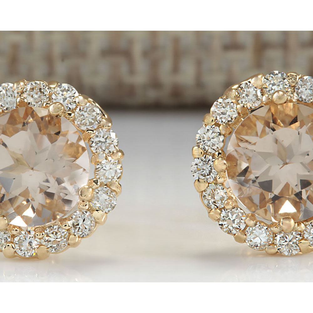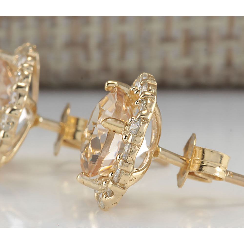 3.65 CTW Natural Morganite And Diamond Earrings 18K Solid Yellow Gold