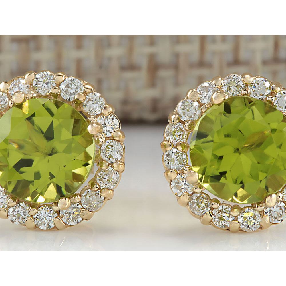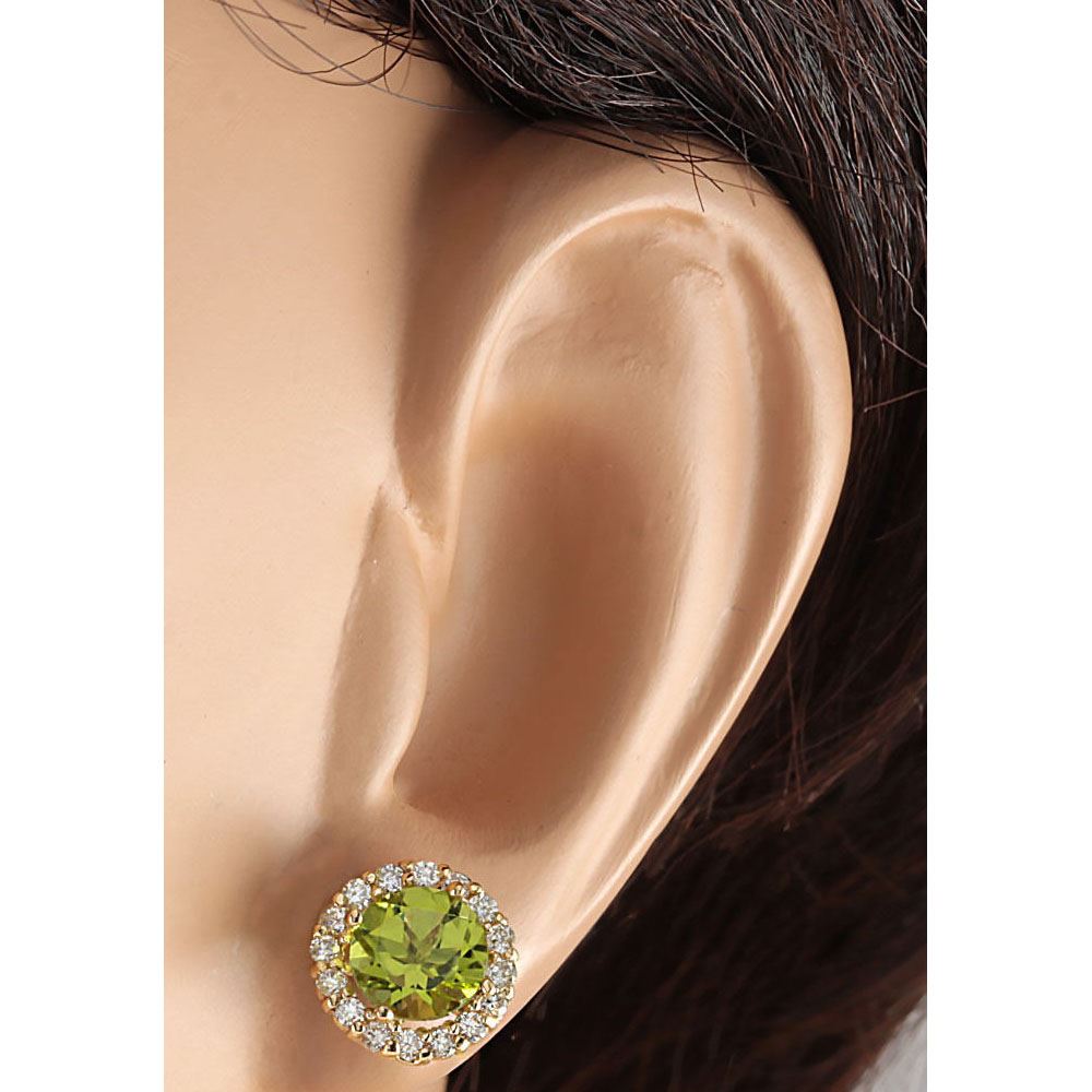 3.65 CTW Natural Peridot And Diamond Earrings 18K Solid Yellow Gold