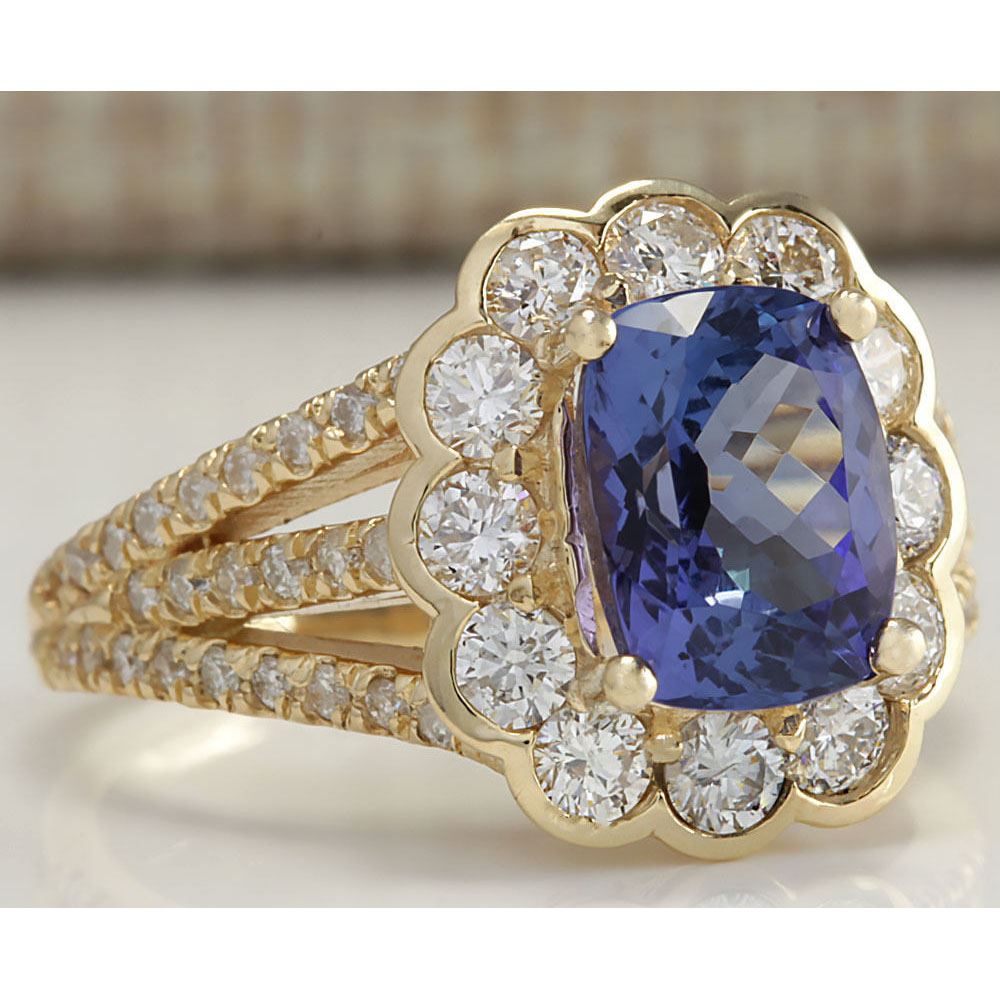 3.65 CTW Natural Tanzanite And Diamond Ring In 14K Yellow Gold