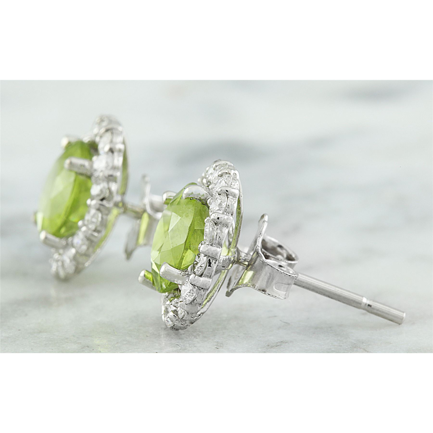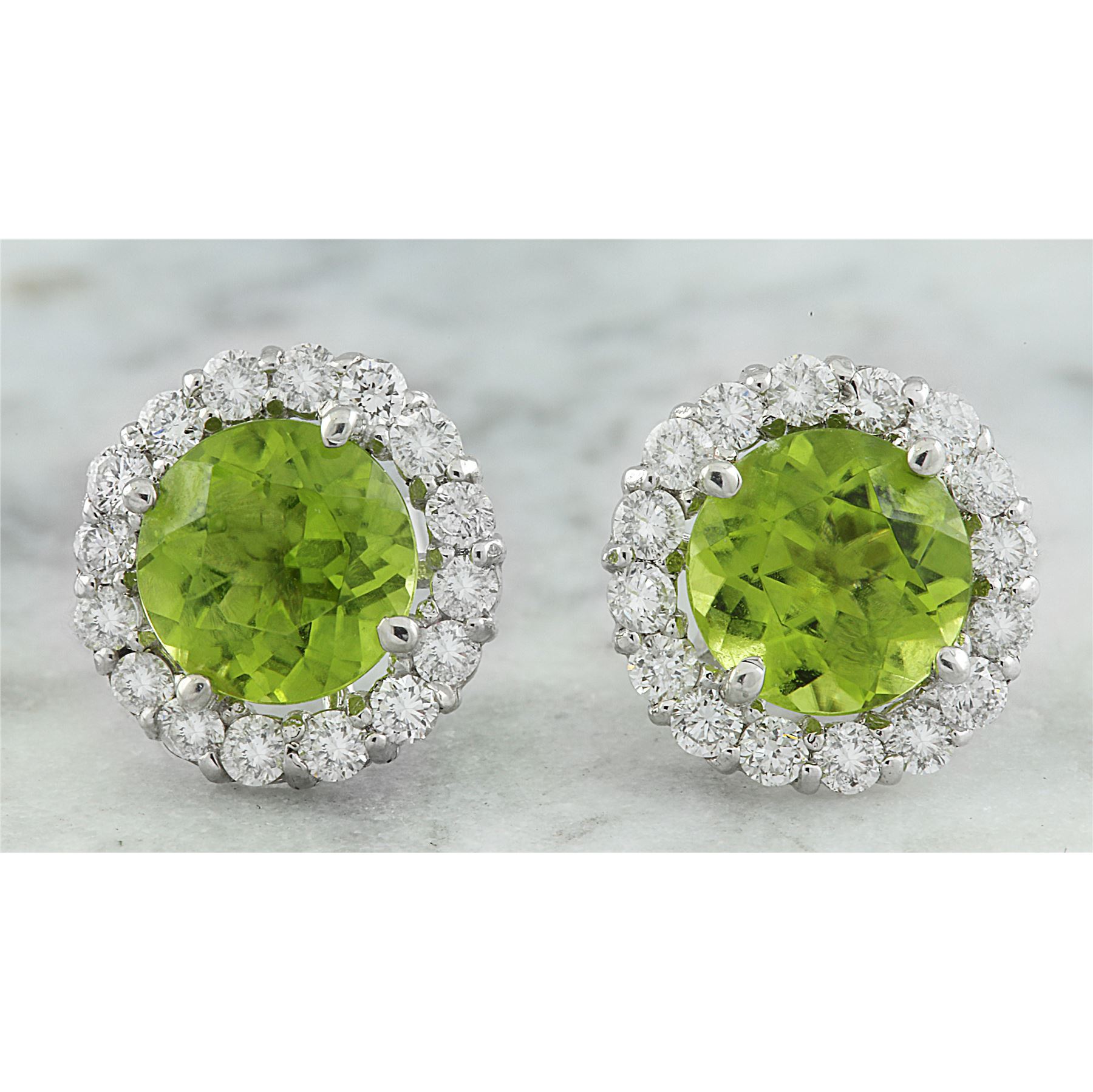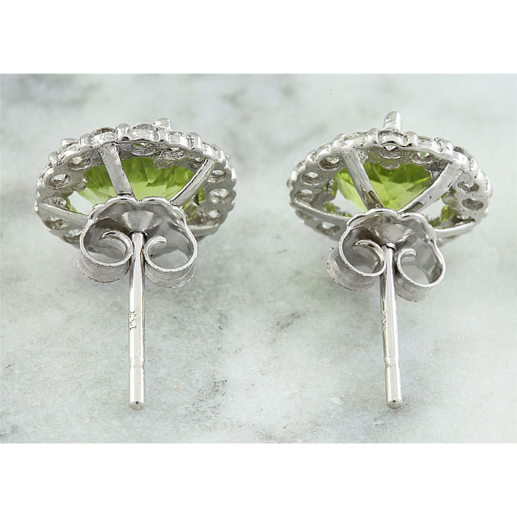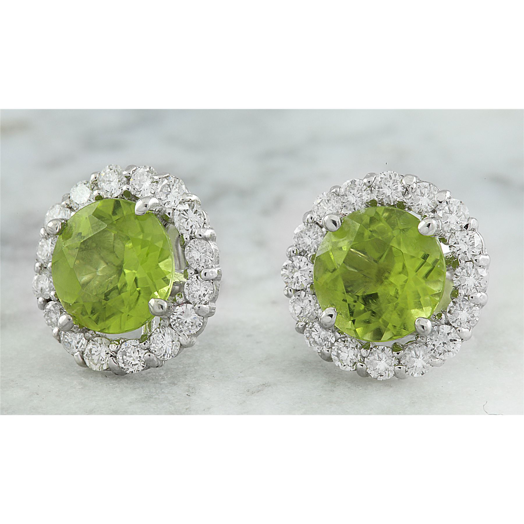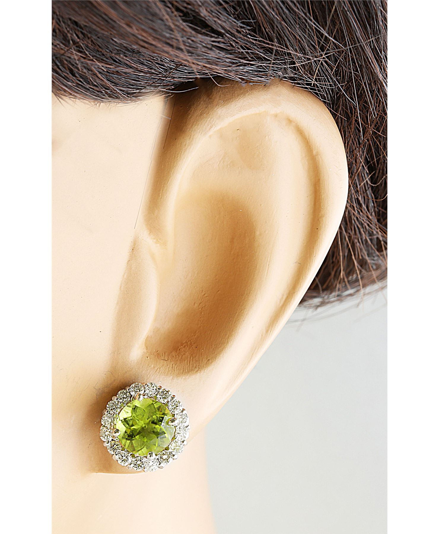 3.65 CTW Peridot 18K White Gold Diamond Earrings
