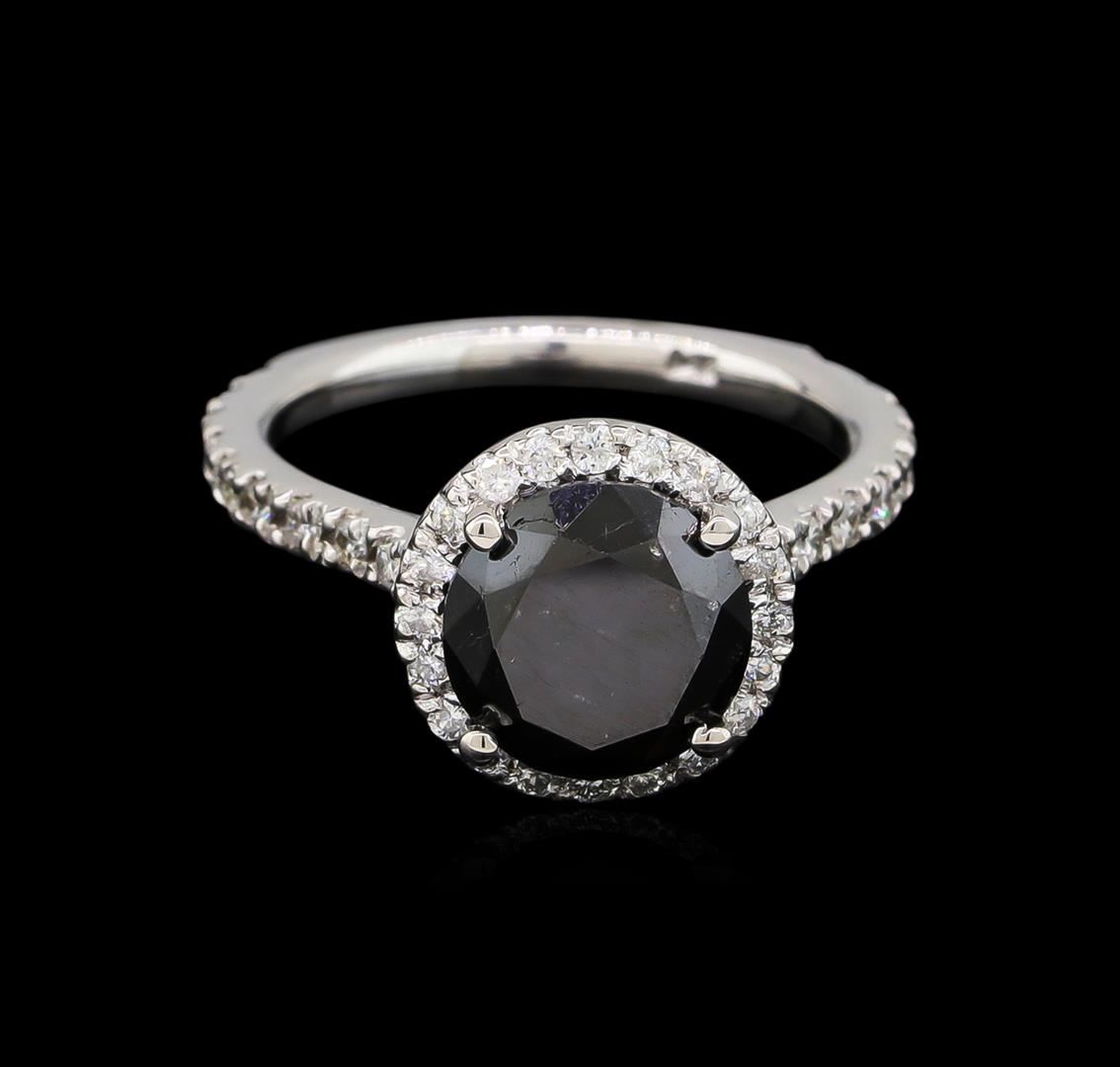 One ring featuring: 14KT white gold weighing 4.06 grams containing one black diamond with a total weight of 3.15ct and side diamonds with a total weight of 0.50ct.