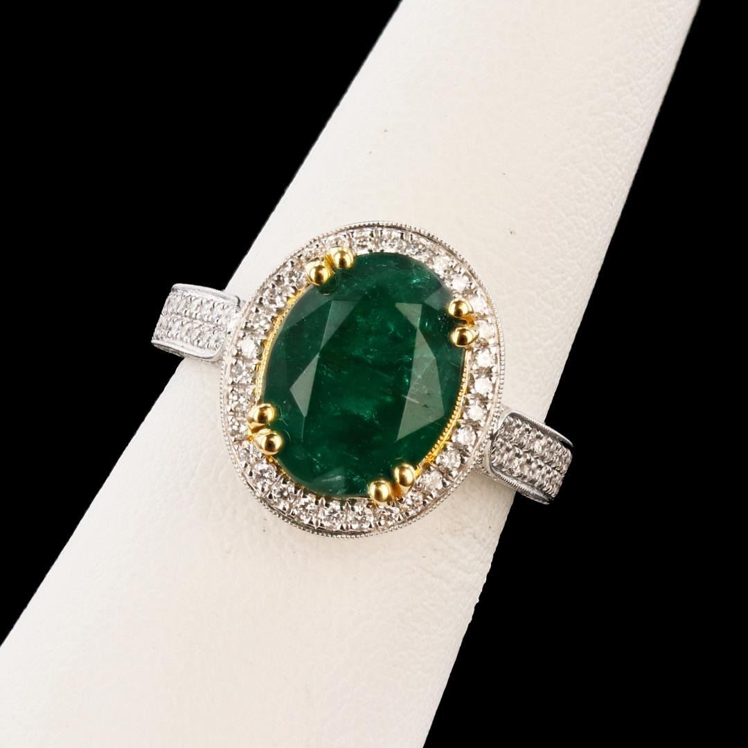3.65 ctw Emerald and 0.47 ctw Diamond 18K White and Yellow Gold Ring