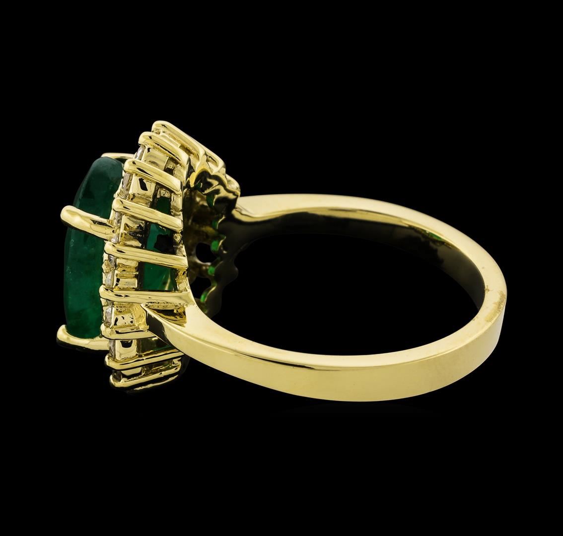 One Ring : 14KT yellow gold weighing 5.42gm containing one emerald with a total weight of 3.65ct and side diamonds weighing 0.47ctw.