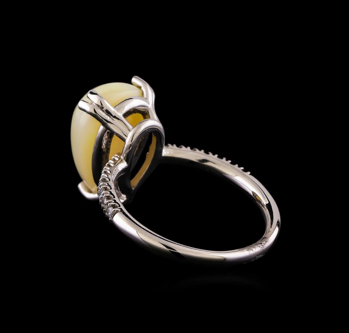 One ring featuring: 14KT white gold weighing 3.30 grams containing one opal with a total weight of 3.65ct and diamonds with a total weight of 0.14ctw.