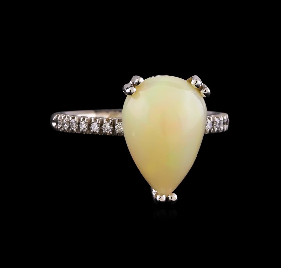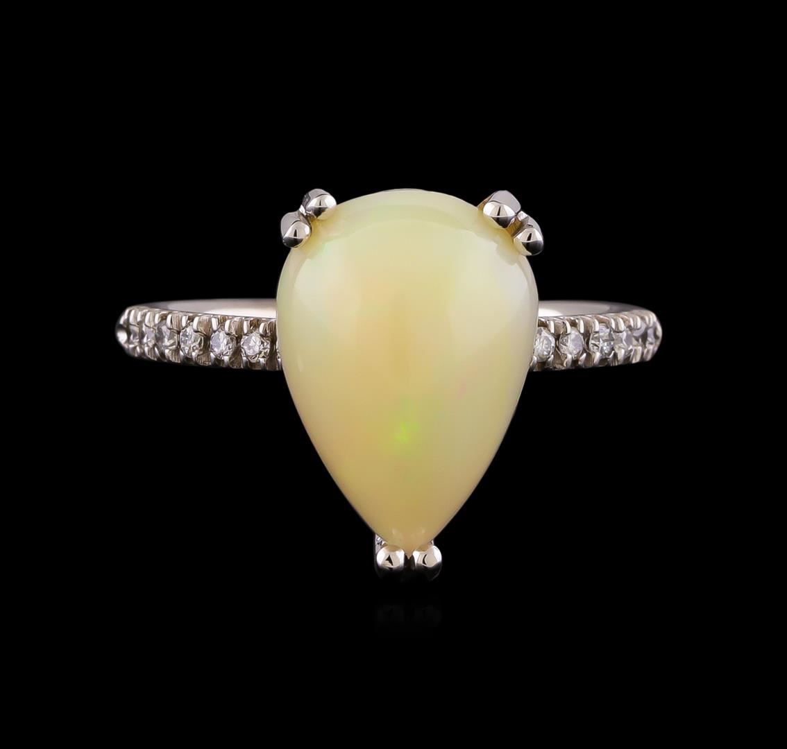 One ring featuring: 14KT white gold weighing 3.30 grams containing one opal with a total weight of 3.65ct and diamonds with a total weight of 0.14ctw.