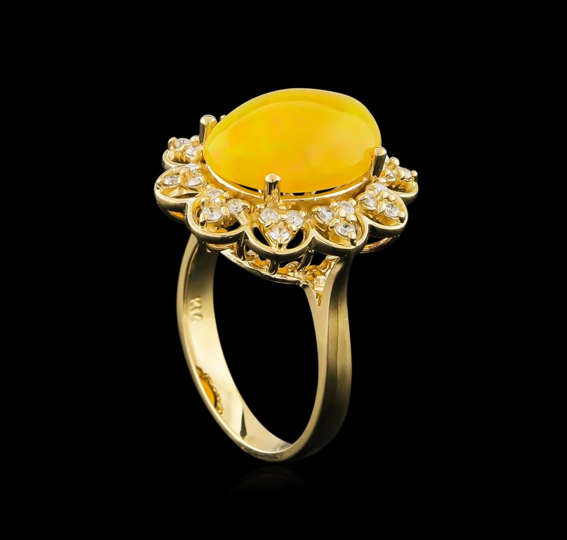 One ring featuring: 14KT yellow gold weighing 5.55 grams containing one opal center stone with a total weight of 3.65ct and diamonds with a total weight of 0.37ct.