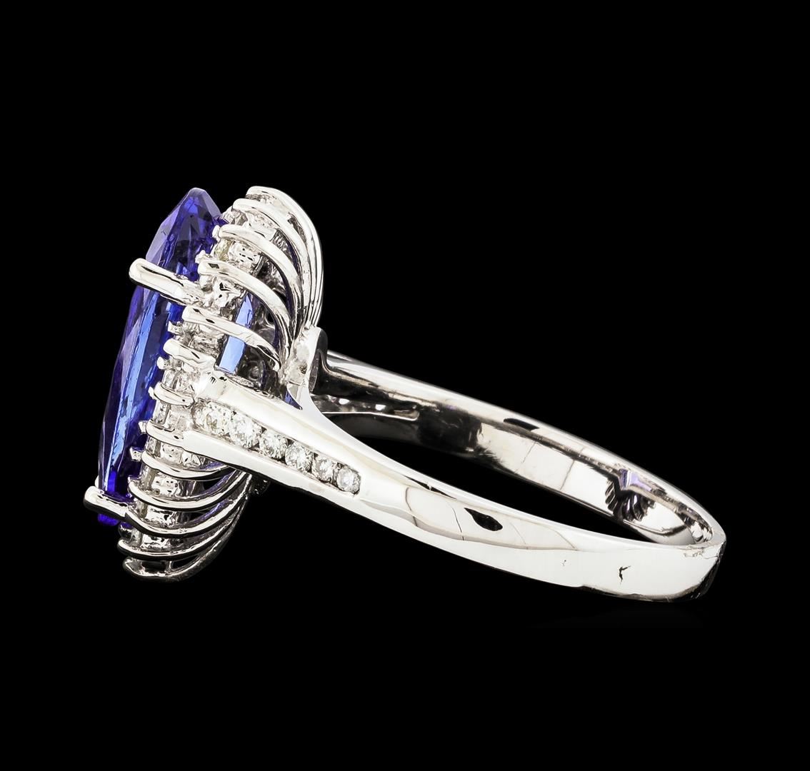 One electronically tested 14KT white gold lady's cast fashion ring with a basket halo with a bright polish finish. The featured lady's ring has a shank measuring 2.38 millimeters wide. Identified with markings of '14K'. Condition is new, good workmanship. Containing: One prong set pear modified brilliant cut natural tanzanite, measuring 15.06 x 8.01 x 4.86mm, (depth est.) approximate weight of 3.65ct., clarity is eye clean, medium, moderately strong, violetish blue color, (GIA vB 5/4), cut is good. Transmitting light with no distortion, transparent. Colored gemstones are presumed to have been subjected to commonly used enhancement processes. Graded in the setting. Twenty-Four prong set round brilliant cut diamonds, measuring 1.60 - 1.55 x 0.95mm (depth est.) approximate total weight of 24 Stones = 0.34ct. Graded in the setting. Clarity SI-1 to SI-2. Color: G - I Cut Good Twelve channel set round brilliant cut diamonds, measuring 1.50 - 1.25 x 0.86mm (depth est.) approximate total weight of 12 Stones = 0.13ct. Graded in the setting. Clarity SI-1 to SI-2. Color: H - I Cut Good. Total Weight of Colored Stones 3.65ct.. Total Weight of Diamonds 0.47ct.. Total Weight of Ring 5.50gm. GAS Appraised at $7,740.00.