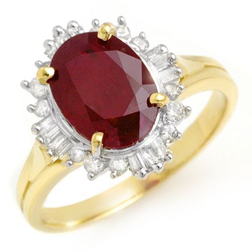 13688 - REF-62V2Y ---- 3.66 CTW Ruby & Diamond Ring 14K Yellow Gold ---- Luxury Designer Brand Ring Appraised at $4,100 Certificate Number US13688 14k Yellow gold, Ring Size is 6.5, Ring measuring approx. 1/2" x 5/8" , weighing in total approx. 3.7 grams. Made in the USA and is stamped 14k, Main stone 3.38 carat total weight containing 1 pieces of Mid-Opaque-Deep Red color with AAA quality Oval shape cut Ruby , Stone #2 0.28 carat total weight containing 24 pieces of H-I color with VS/SI quality Round shape cut Diamond