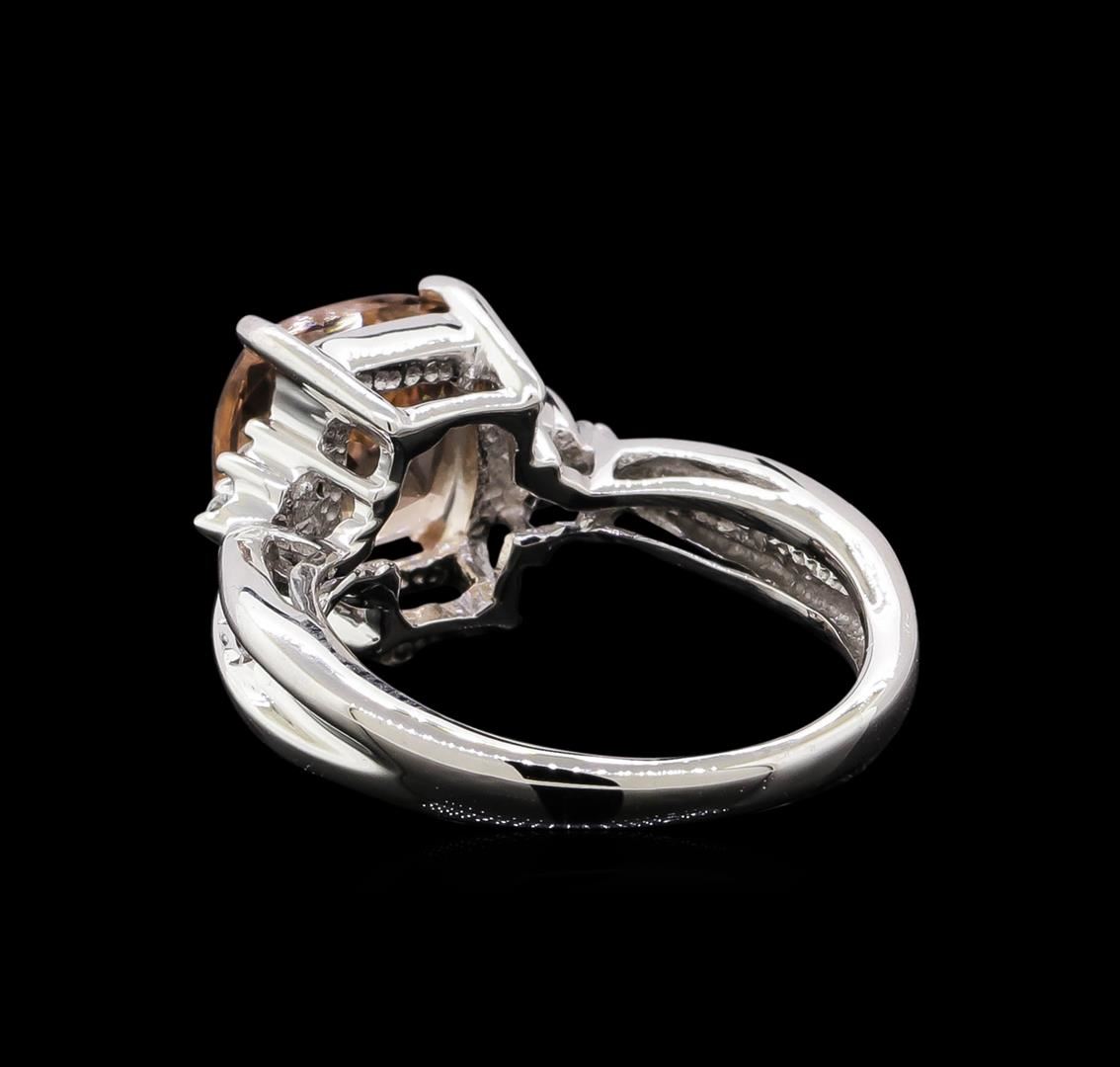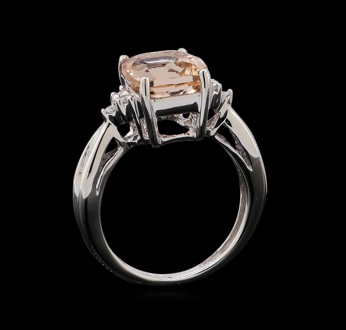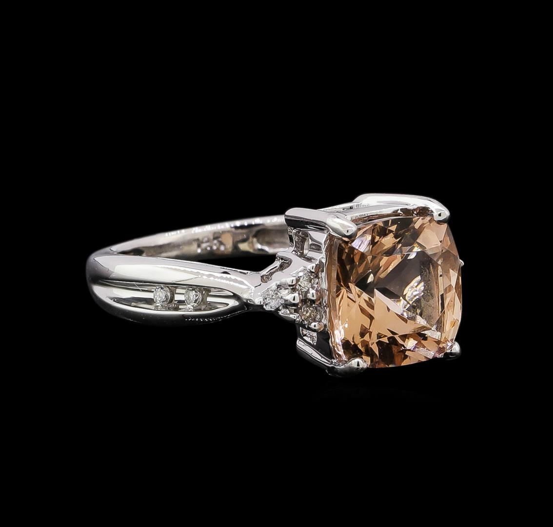 One ring : 14KT white gold weighing 3.8gm containing one morganite with a total weight of 3.66ct and diamonds weighing 0.06ctw.
