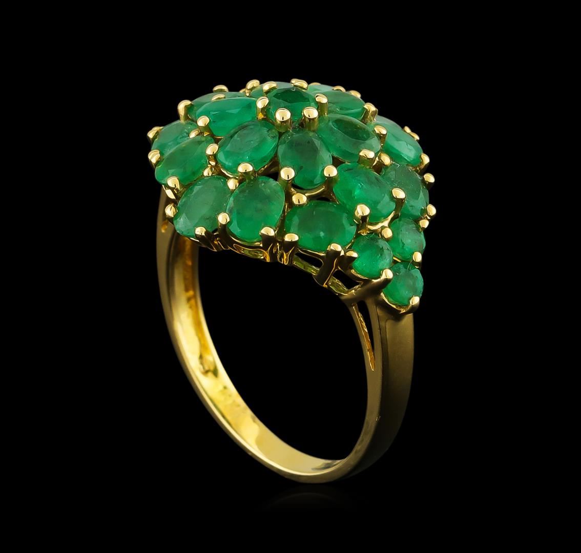 One ring featuring: 14KT yellow gold weighing 3.04 grams containing 25 emeralds with a total weight of 3.68ct.