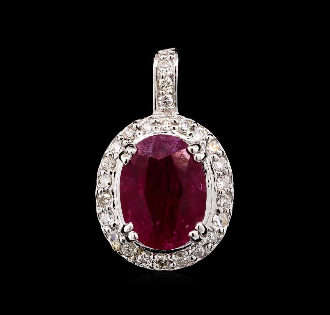 One pendant featuring: 14KT white gold weighing 4.02 grams containing one ruby with a total weight of 3.68ct and side diamonds with a total weight of 0.45ct.