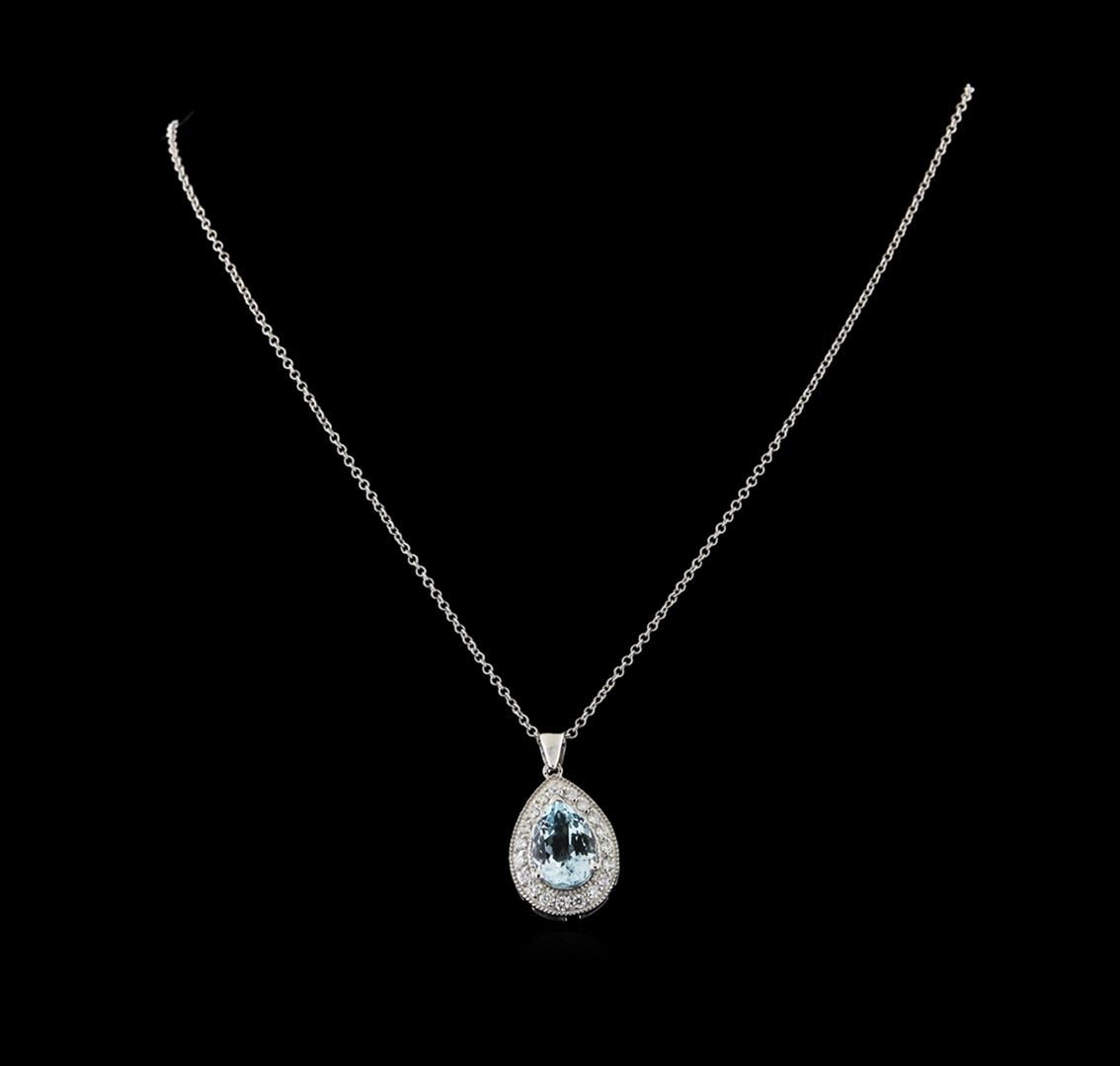 One Pendant With Chain featuring: 14KT White Gold weighing 3.03 grams containing one Aquamarine center stone with a total weight of 3.7ct and Diamonds with a total weight of 0.5ct.