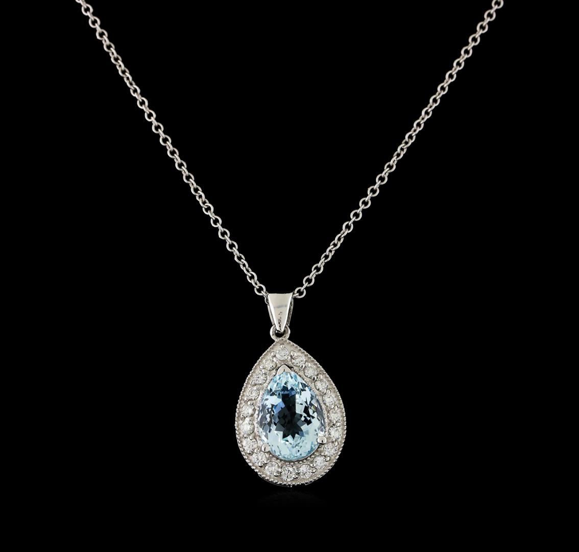 One Pendant With Chain featuring: 14KT White Gold weighing 3.03 grams containing one Aquamarine center stone with a total weight of 3.7ct and Diamonds with a total weight of 0.5ct.