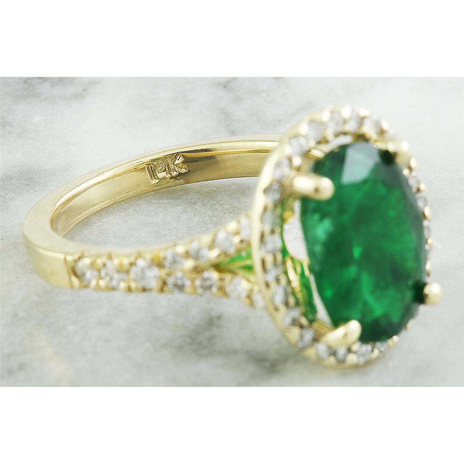 3.70 CTW Emerald 18K Yellow Gold Diamond Ring