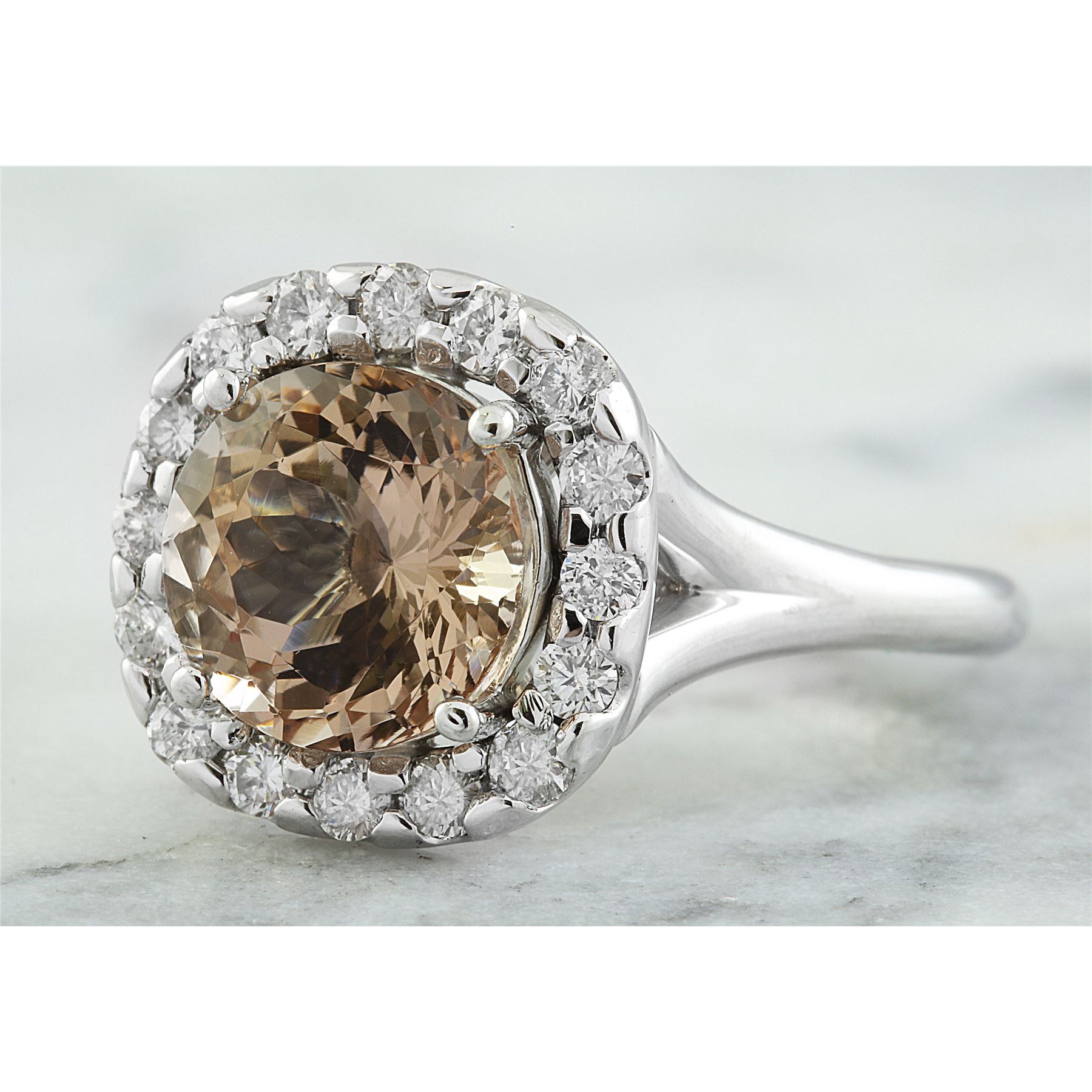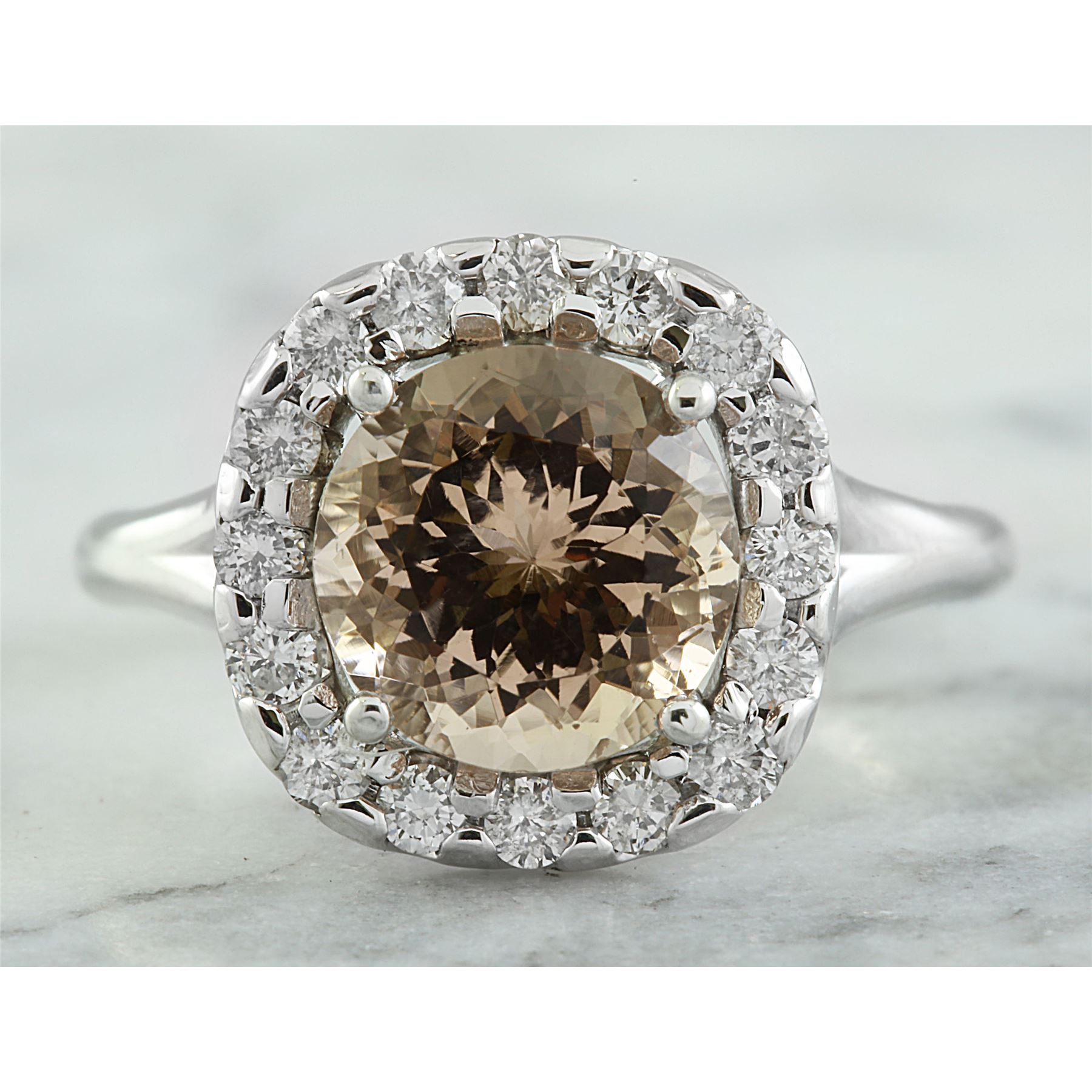 3.70 CTW Morganite 18K White Gold Diamond Ring