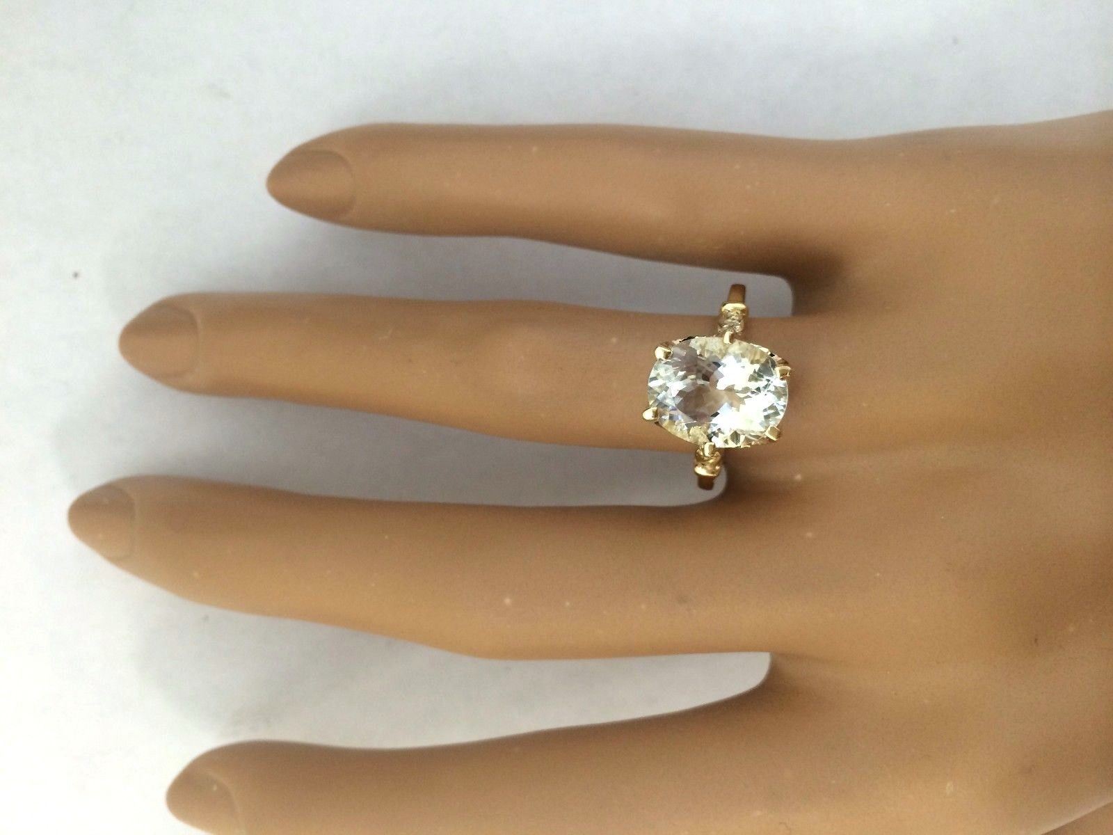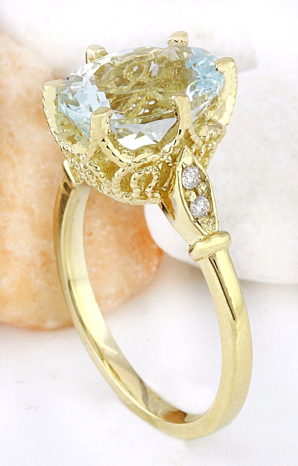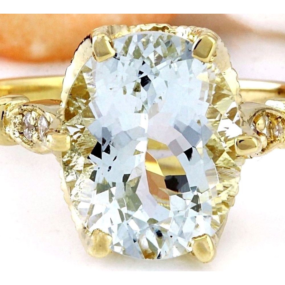 3.70 Carat Natural Aquamarine 18K Solid Yellow Gold Diamond Ring