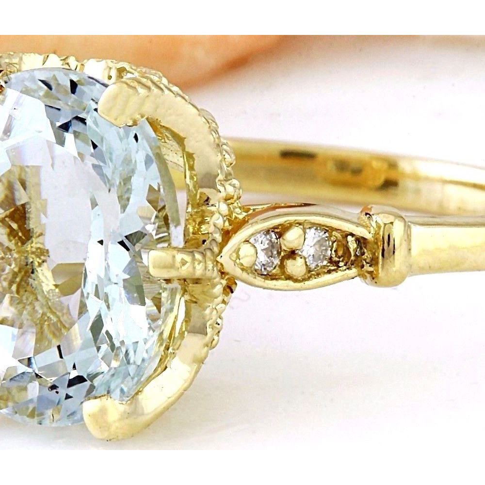 3.70 Carat Natural Aquamarine 18K Solid Yellow Gold Diamond Ring