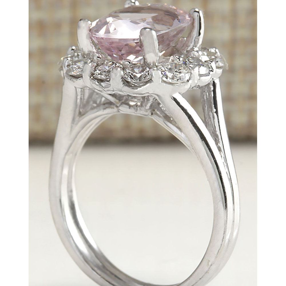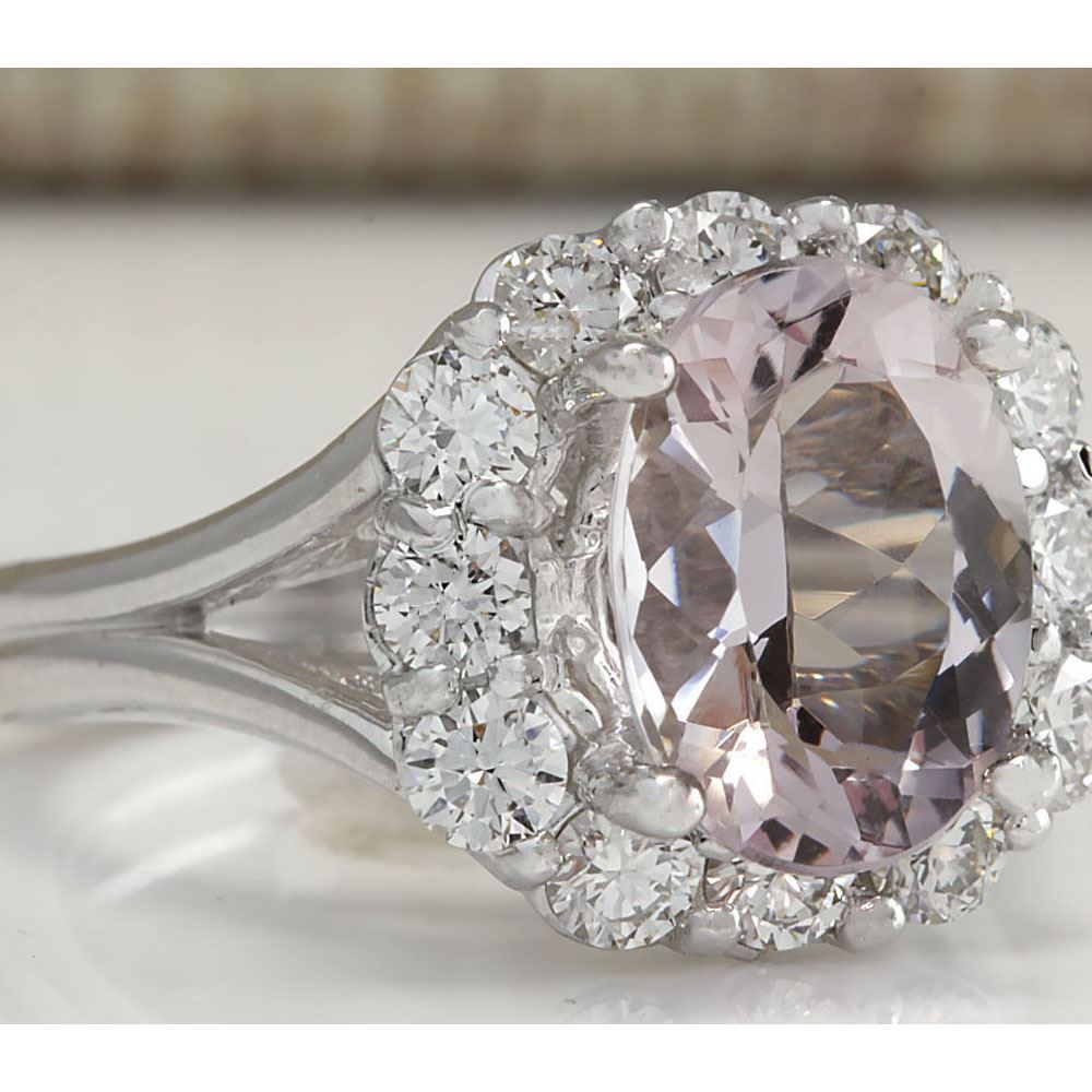 3.70 CTW Natural Peach Morganite And Diamond Ring In 14K Solid White Gold