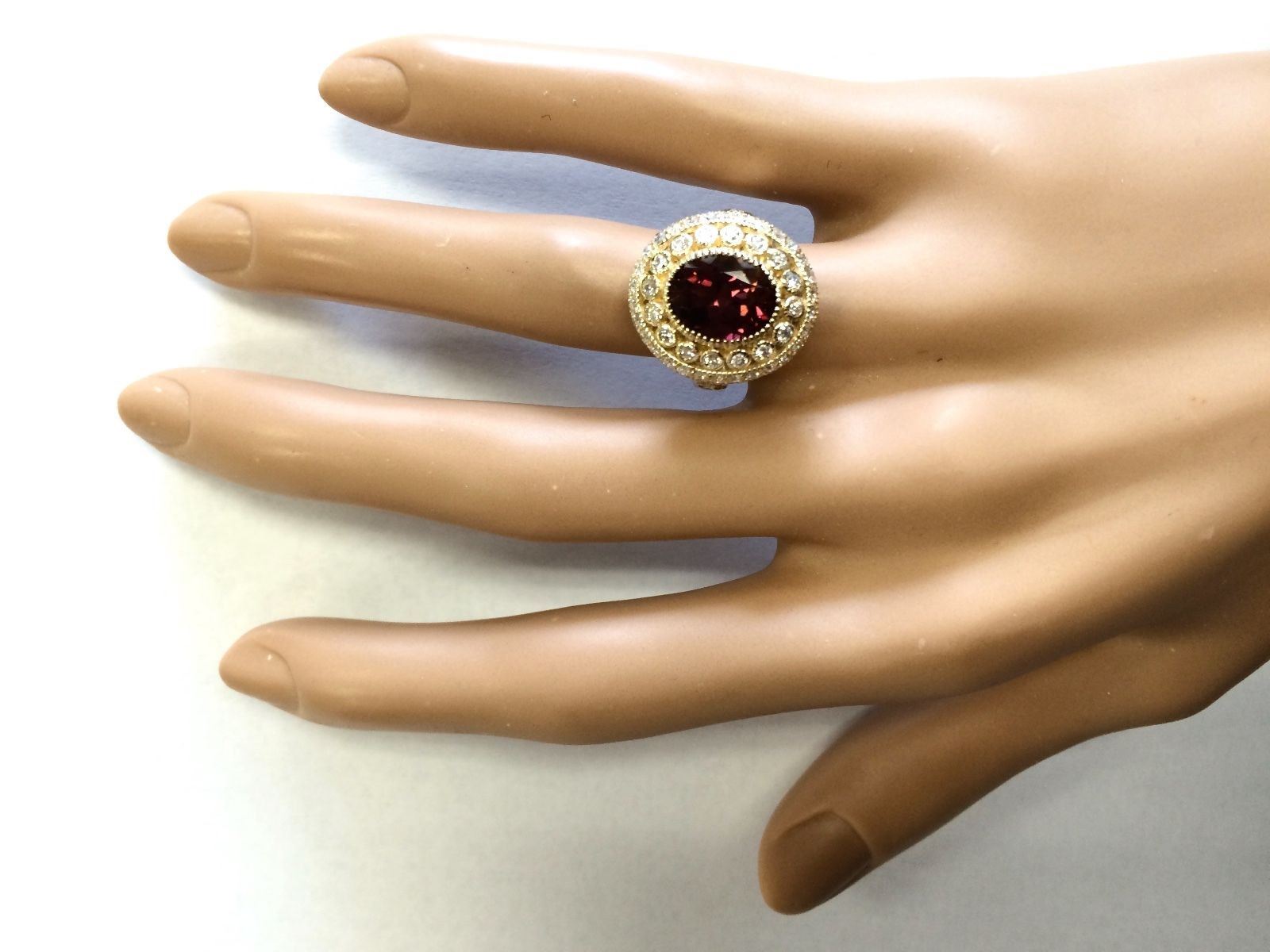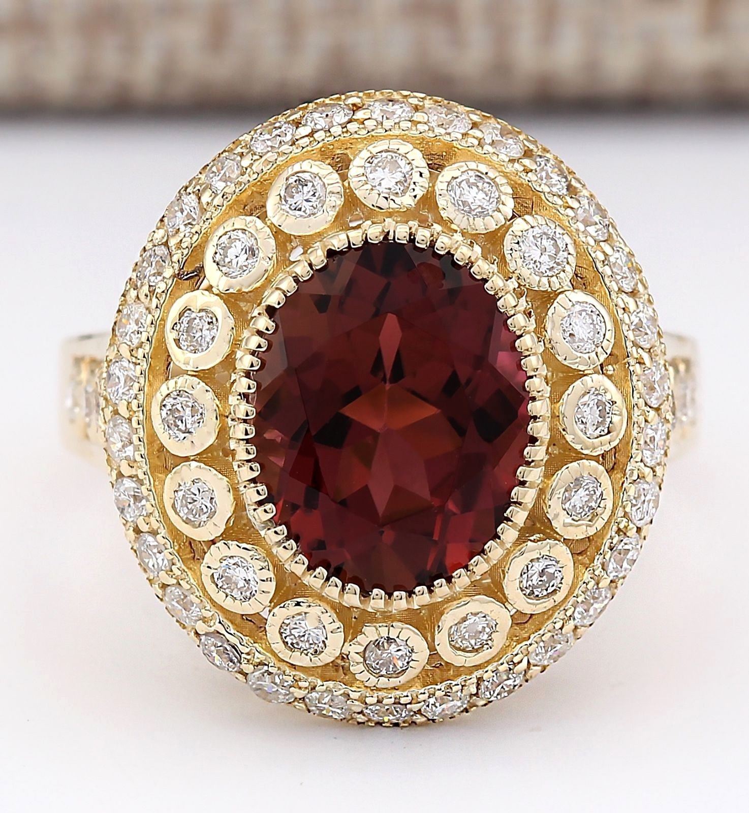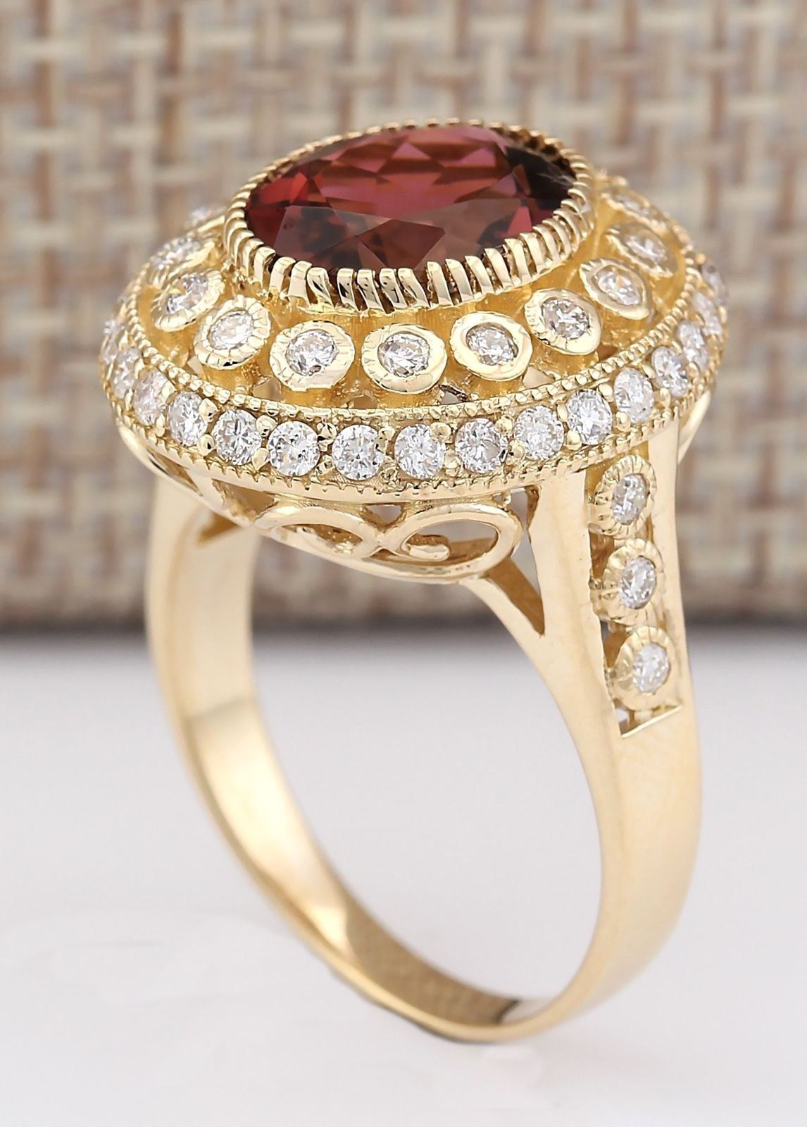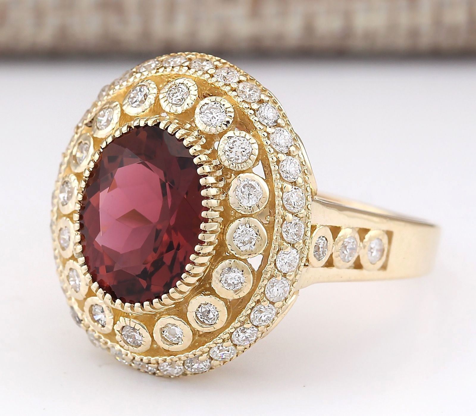 3.70 CTW Natural Pink Tourmaline And Diamond Ring 18K Solid Yellow Gold