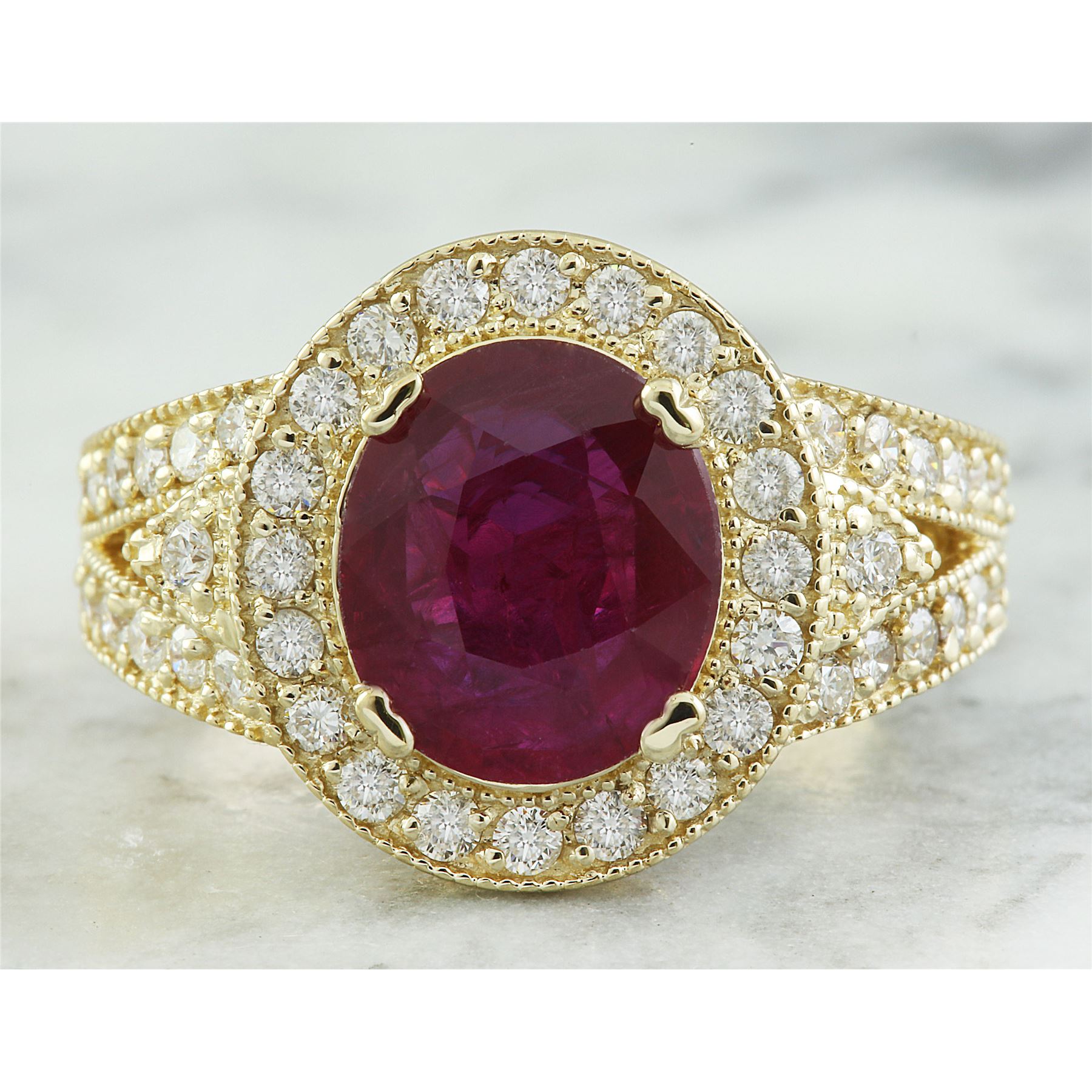 3.70 CTW Ruby 14K Yellow Gold Diamond Ring