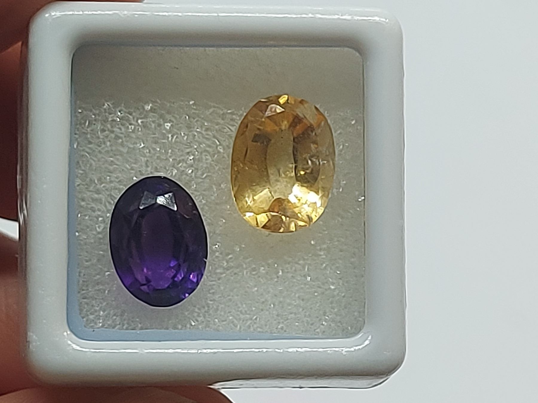 3.70 ct AMETHYST Origin: Africa Colour: DARK PURPLE, Shape: Oval, Clarity: IF - Perfect, 4.72 ct. CITRINE Origin : Brazil Clarity: VVS - eye Clean