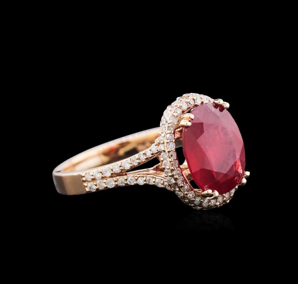 One ring featuring: 14KT rose gold weighing 4.80 grams containing one ruby center stone with a total weight of 3.70ct and 121 diamonds with a total weight of 0.67ct.