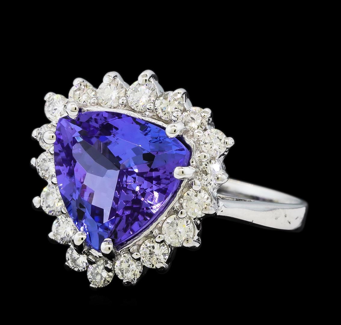 One Tanzanite and Diamond Ring including: 14KT White Gold weighing a total of 4.07 grams, Tanzanite weighing a total of 3.70ct, and 18 Diamonds weighing a total of 0.65ctw.