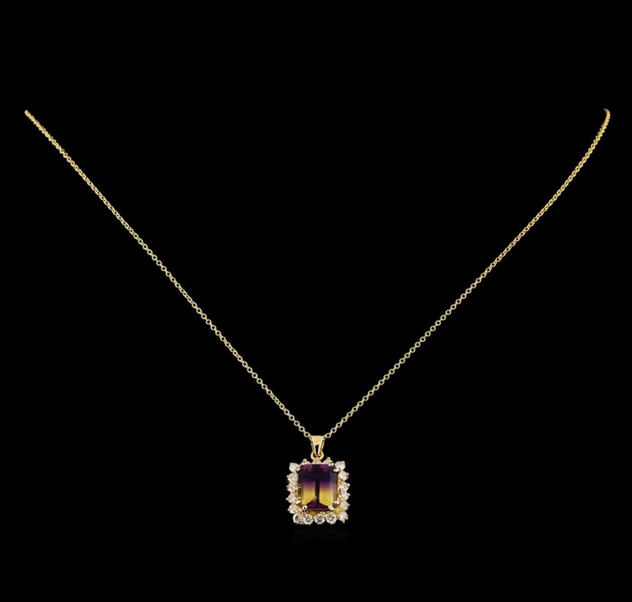 One pendant with chain featuring: 14KT yellow gold weighing 3.93 grams containing one ametrine with a total weight of 3.71ct and diamonds with a total weight of 0.90ct.
