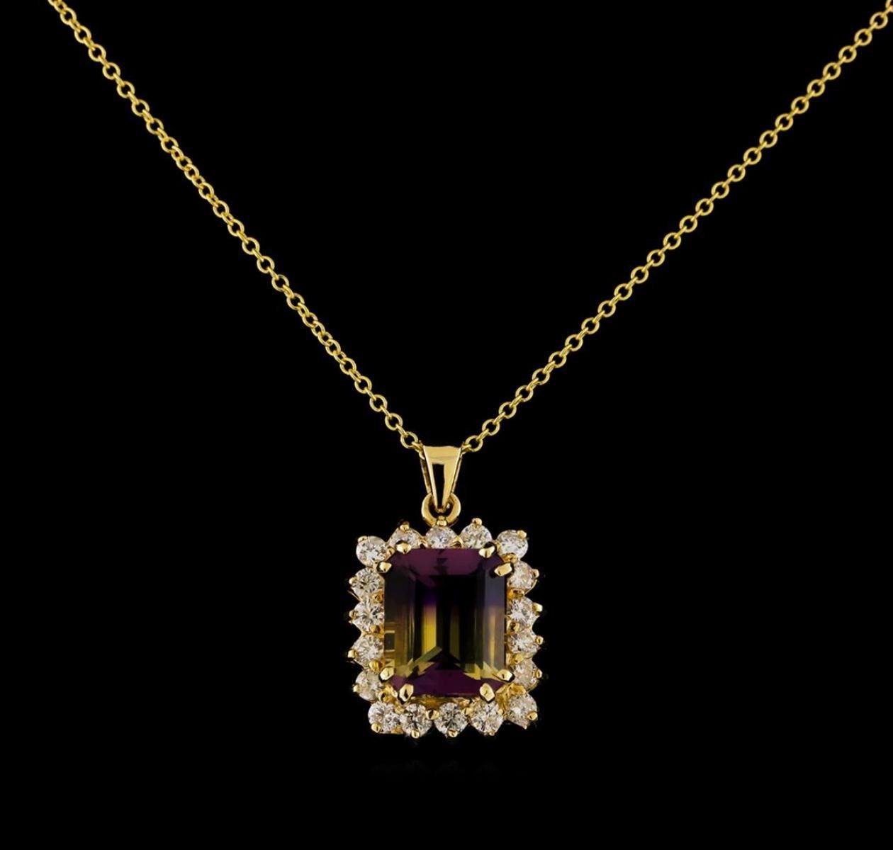 One pendant with chain featuring: 14KT yellow gold weighing 3.93 grams containing one ametrine with a total weight of 3.71ct and diamonds with a total weight of 0.90 ct.