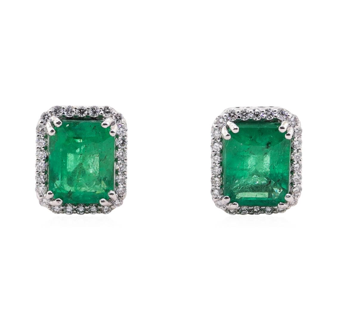 One 3.71ctw Emerald and Diamond Earrings - Platinum. AIG certified. See Appraisal for more details. AIG Appraised.