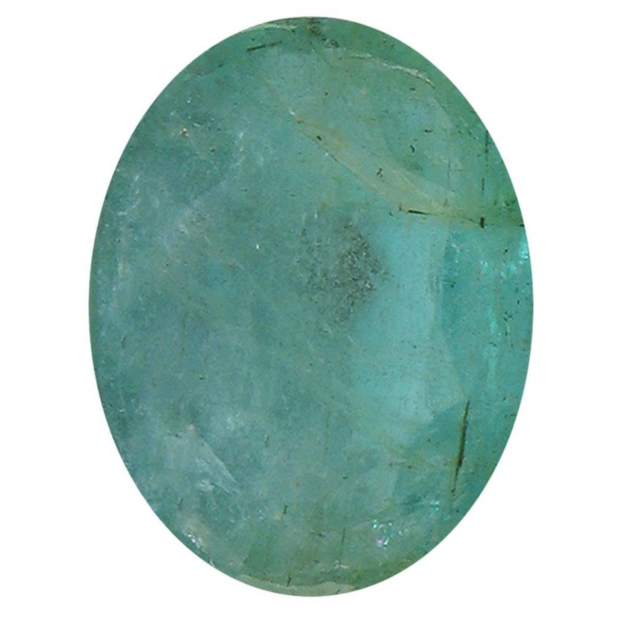 One oval mixed cut natural emerald, measuring 11.80 x 9.20 x 5.10mm, exact weight 3.71ct., clarity is heavily included, type III, dark, very slightly grayish, bluish green color, (GIA bG 7/3), cut is good. Indications of multiple laboratory enhancements, including high temperature heat treatment. Westfield Appraised.
