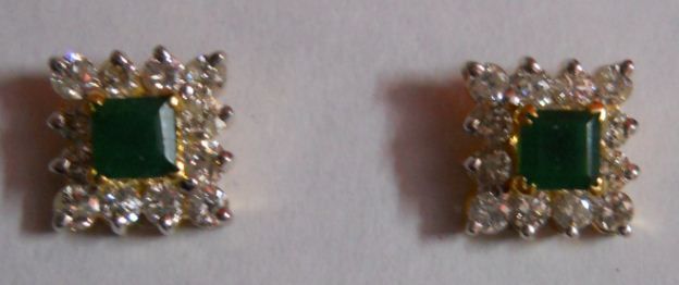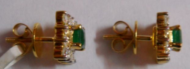 Earring of total weight 3.718g in 14kt 3.378g Gold ,Diamond:1.02 Ctw and Emerald:0.68 Ctw