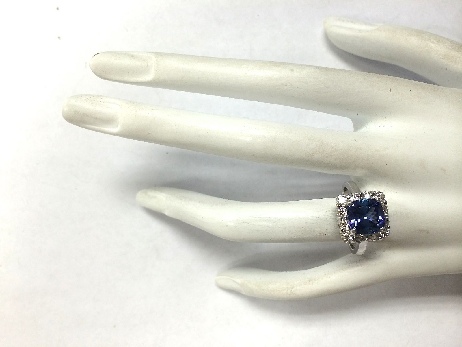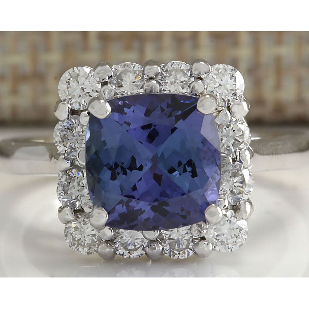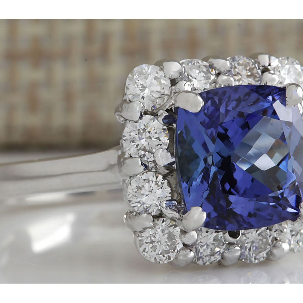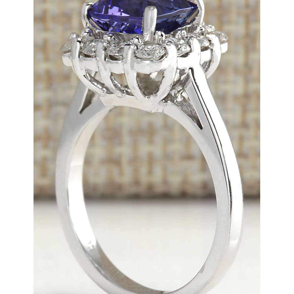 3.72 CTW Natural Blue Tanzanite And Diamond Ring In 14K White Gold