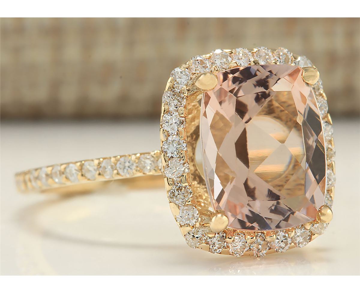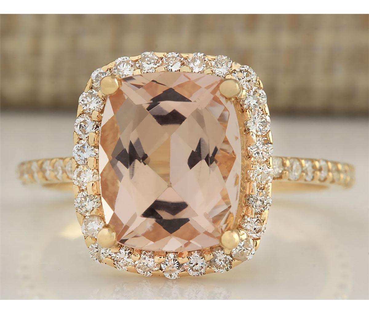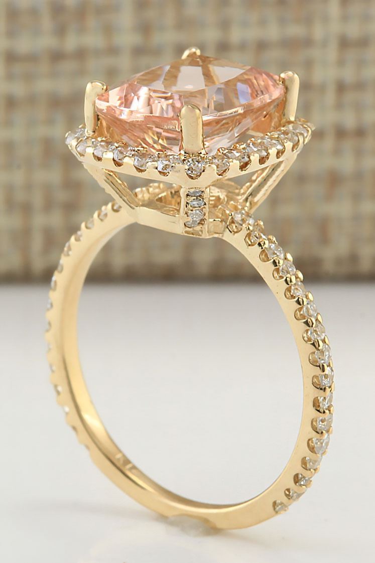 Stamped: 14K Ring Size: 6.5 Total Ring Weight: 3.3 Grams Diamond Weight: Total natural diamond weight is .70carat. SI1-SI2 clarity / G-H color Gemstone Weight: Total Natural Peach Morganite Weight is 3.02ctw (Measures: 10.10x8.00mm) Main Stone Color: Peach Face Measures: 12.83x11.45mm SKU: [703810]