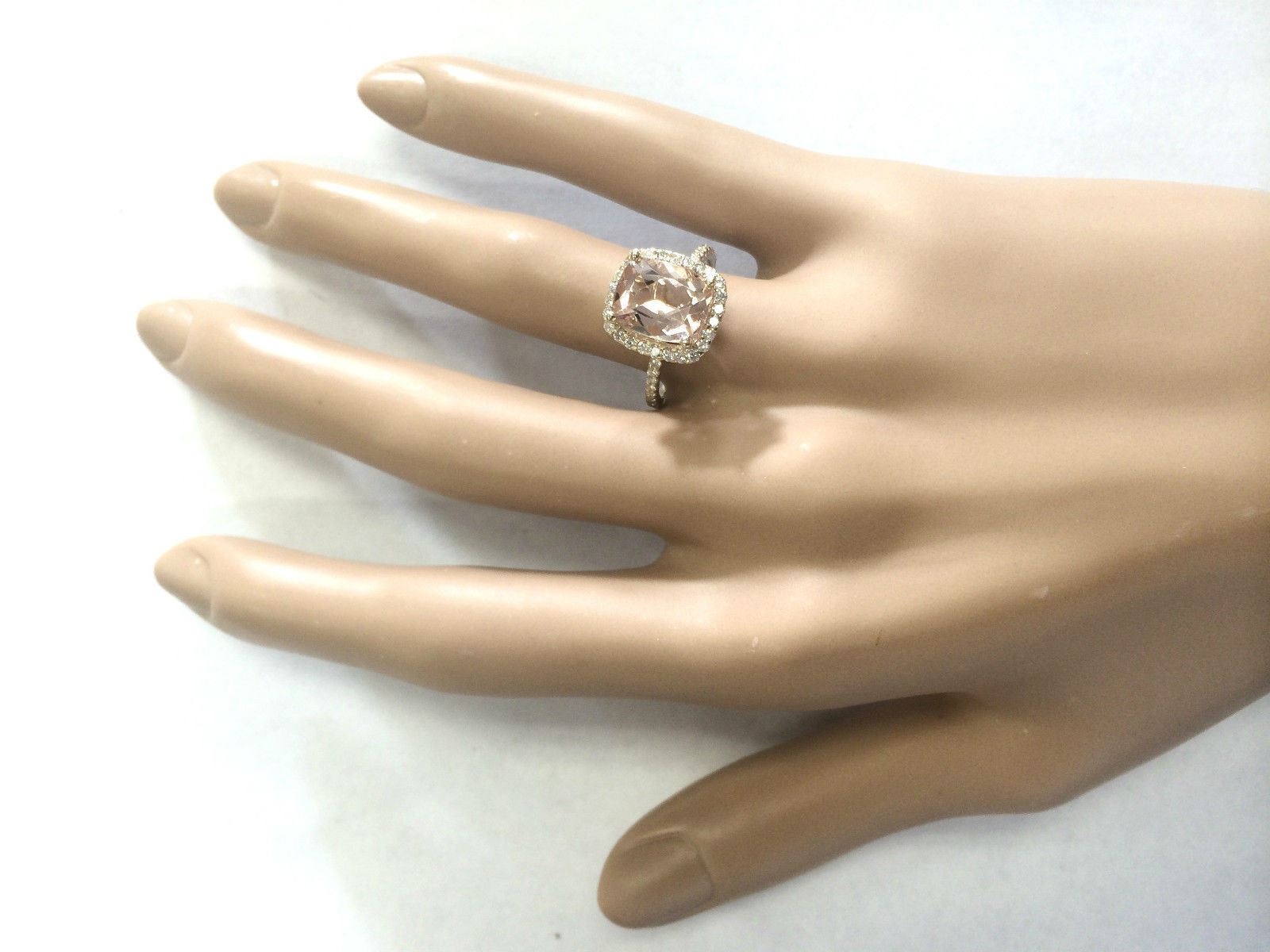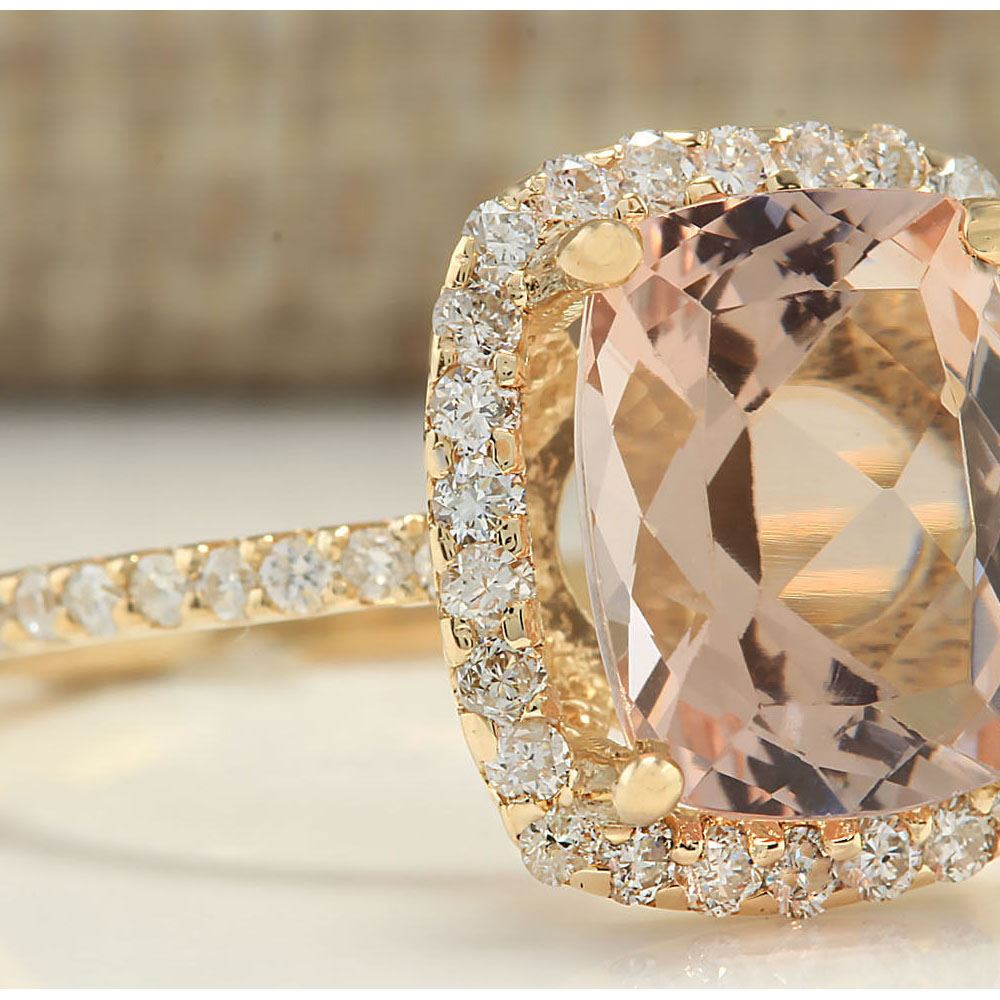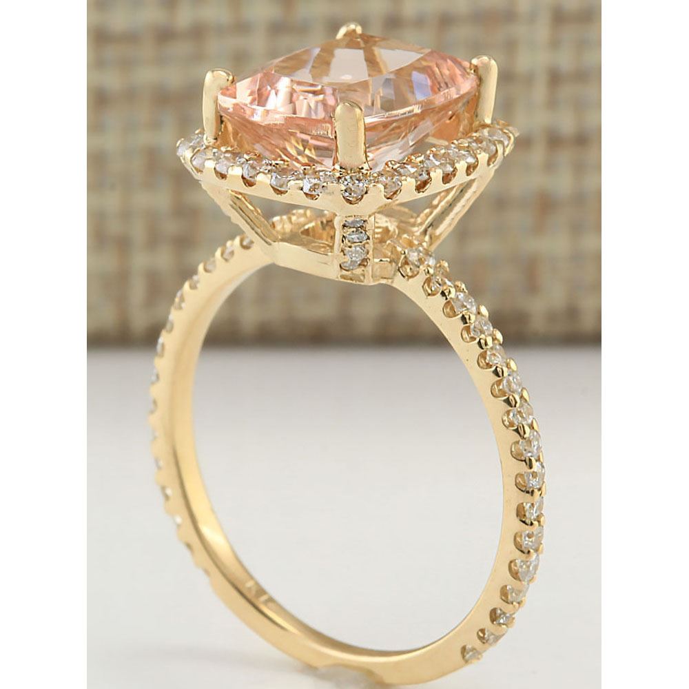 3.72 CTW Natural Morganite And Diamond Ring In 18K Solid Yellow Gold