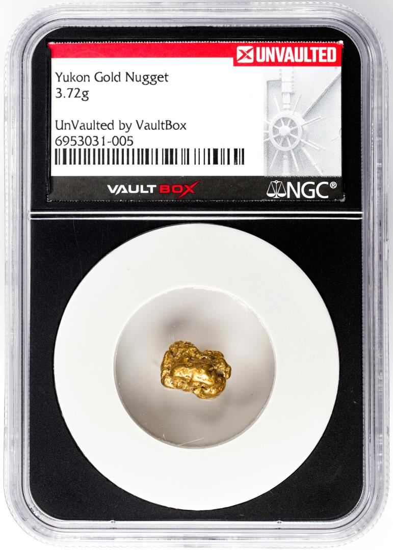 One 3.72 Gram Yukon Gold Nugget NGC Vaultbox Unvaulted. NGC Certified.