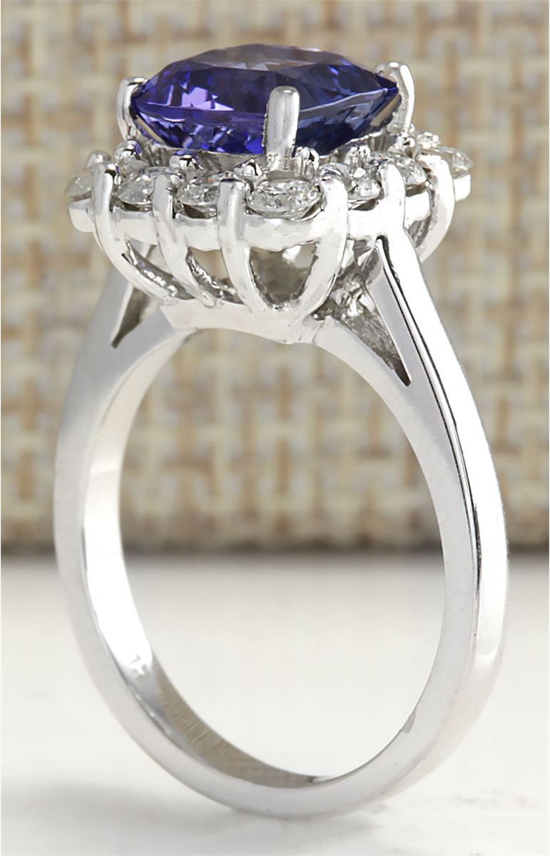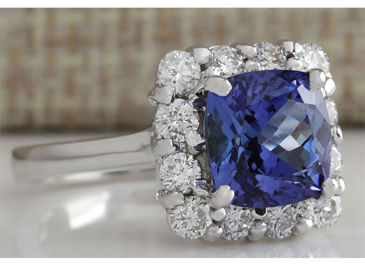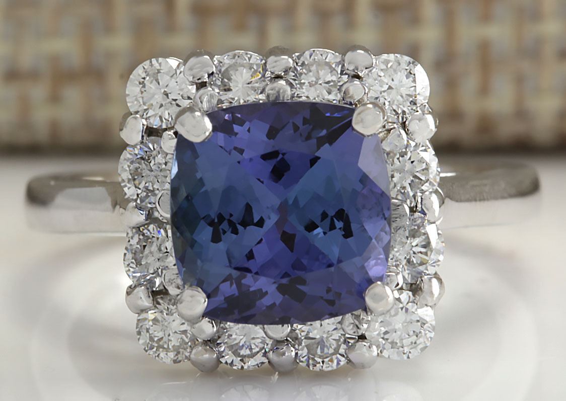 Stamped: 14K Ring Size: 6.5 Total Ring Weight: 6 Grams Diamond Weight: Total natural diamond weight is .85carat. SI1-SI2 clarity / G-H color Gemstone Weight: Total Natural Tanzanite Weight is 2.87ctw (Measures: 8.27x8.24mm) Face Measures: 12.34x12.27mm Main stone color: Blue [SKU:702812]