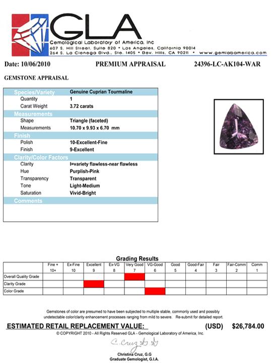 Excellent purple pink color RARE copper-bearing specimen trillion cut: COPPER in tourmaline is rare and highly prized, it makes the stone color much more vivid (sometimes neon-like) and causes the stone to mimick the reflectivity of diamond; lab quality e